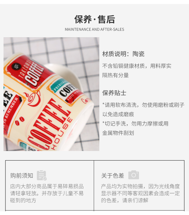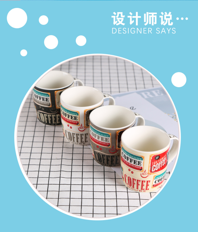 产品名称:不带盖设计咖啡店用多色陶瓷马克杯咖啡杯 创意个性潮流家用水杯