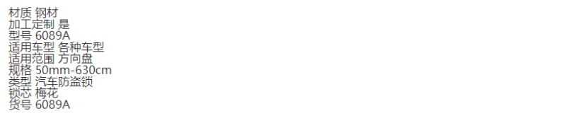 About Product:Product Name; Single and double card steering wheel lock; Model 6089A, applicable vehicle model applicable to various models; Scope; Steering wheel specification 50mm-630cm type vehicle anti-theft lock; Lock cylinder; Plum blossom,
