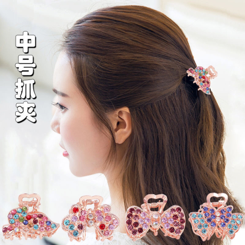 medium size hair claw with drill barrettes back head clip bang clip accessories female korean hairpin rhinestone alloy top clip 中文版