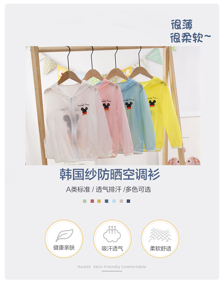 Children's breathable sunscreen clothing for boys and girls, infant baby beach skin clothes, Mickey sunscreen jacket