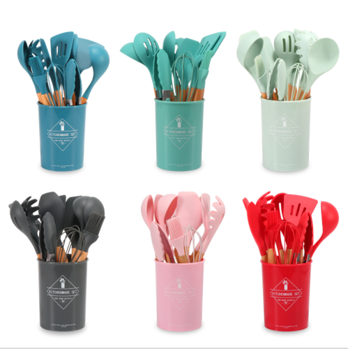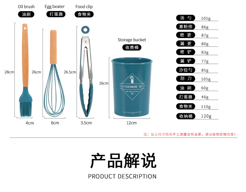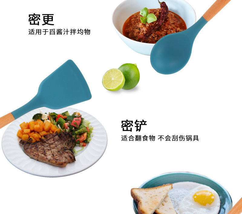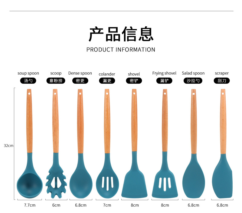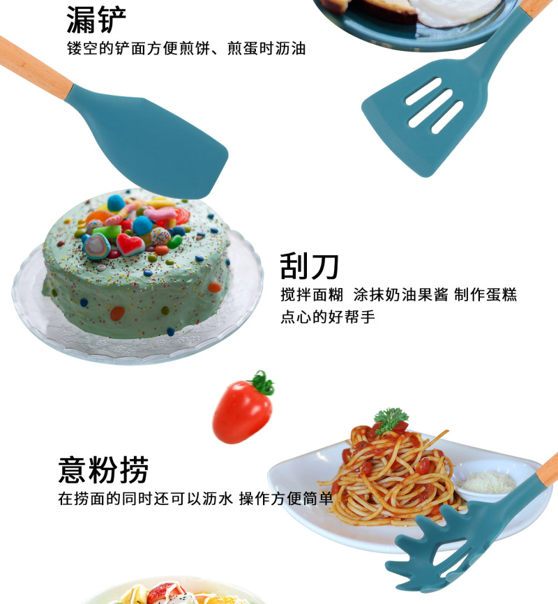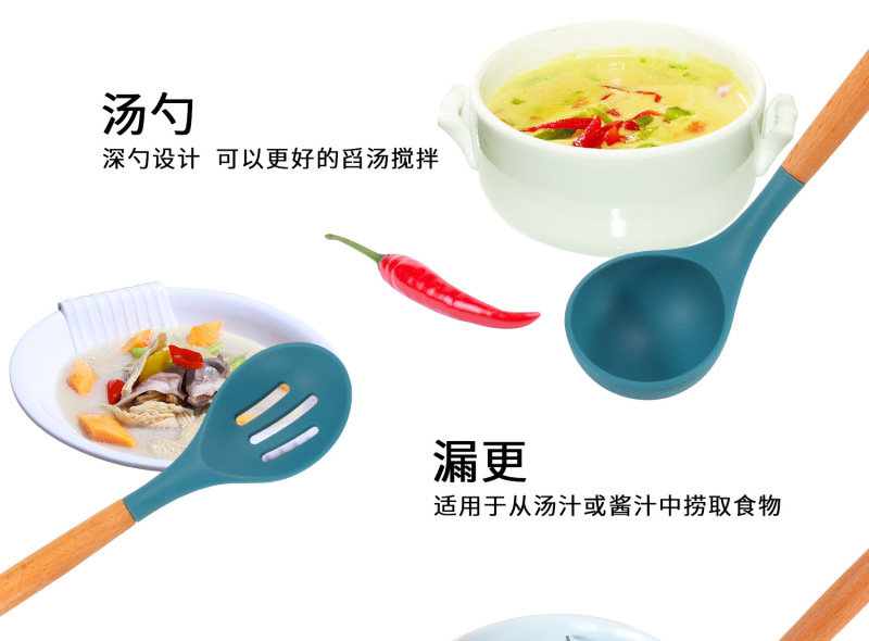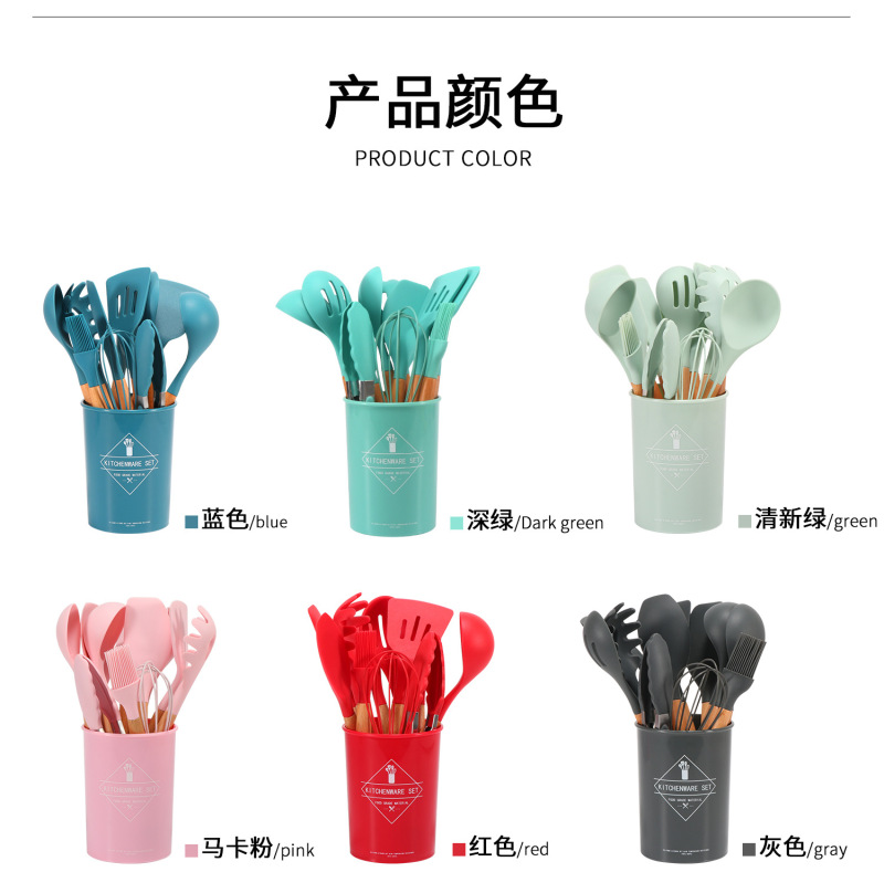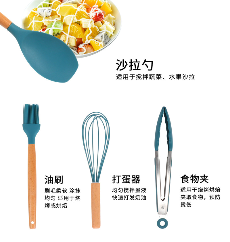Silicone kitchen utensils and appliances 11 sets of wooden handle silicone cooking supplies non-stick cooking pot kitche 中文版