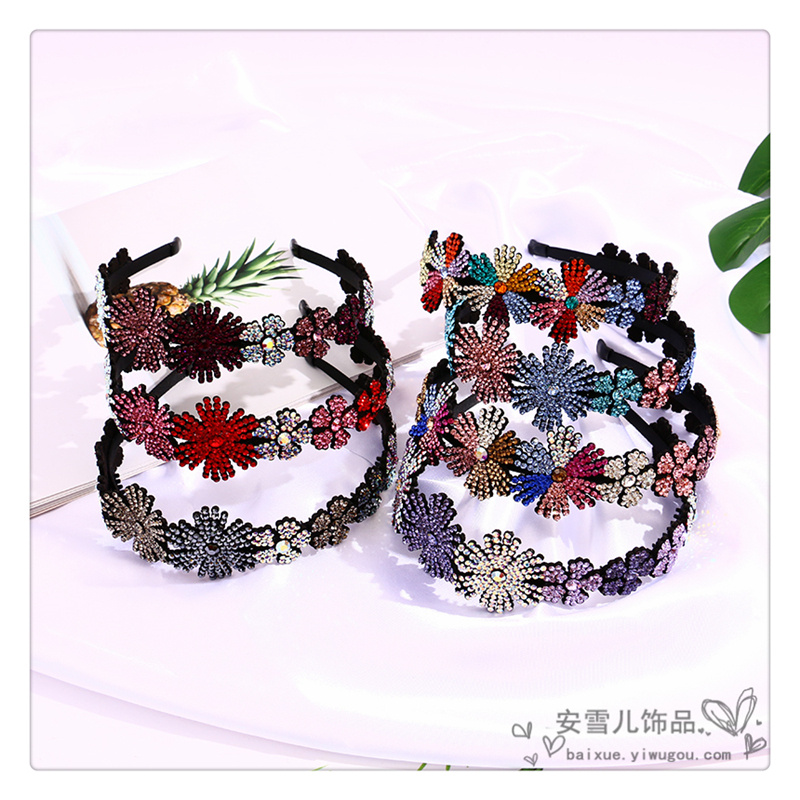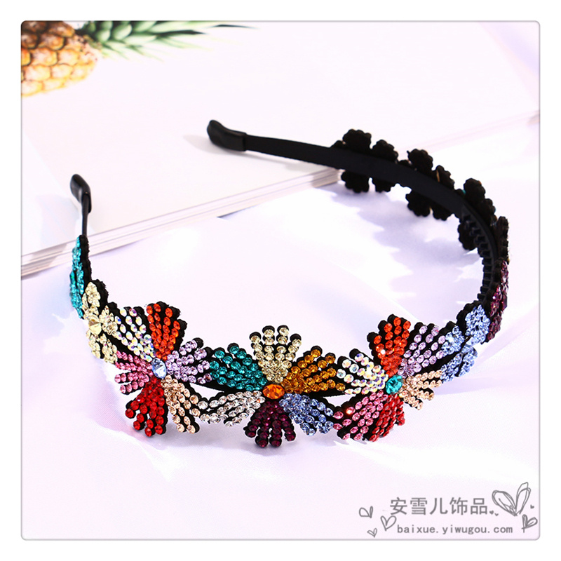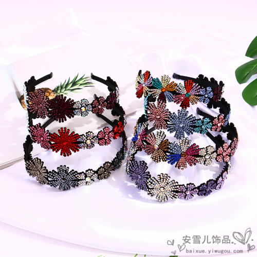 new rhinestone colorful flowers spring headband vitality lady shiny pastoral fresh headband non-slip headband durable