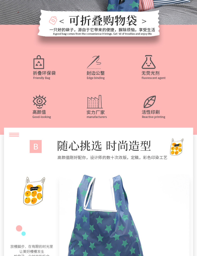 About Product:New folding eco-friendly supermarket Shopping polyester waterproof bag customized LOGO portable portable gift advertising bag.. All the products of our factory can be customized LOGO printing words and various patterns, patterns and sizes, etc. Welcome to sample. To customize the picture.