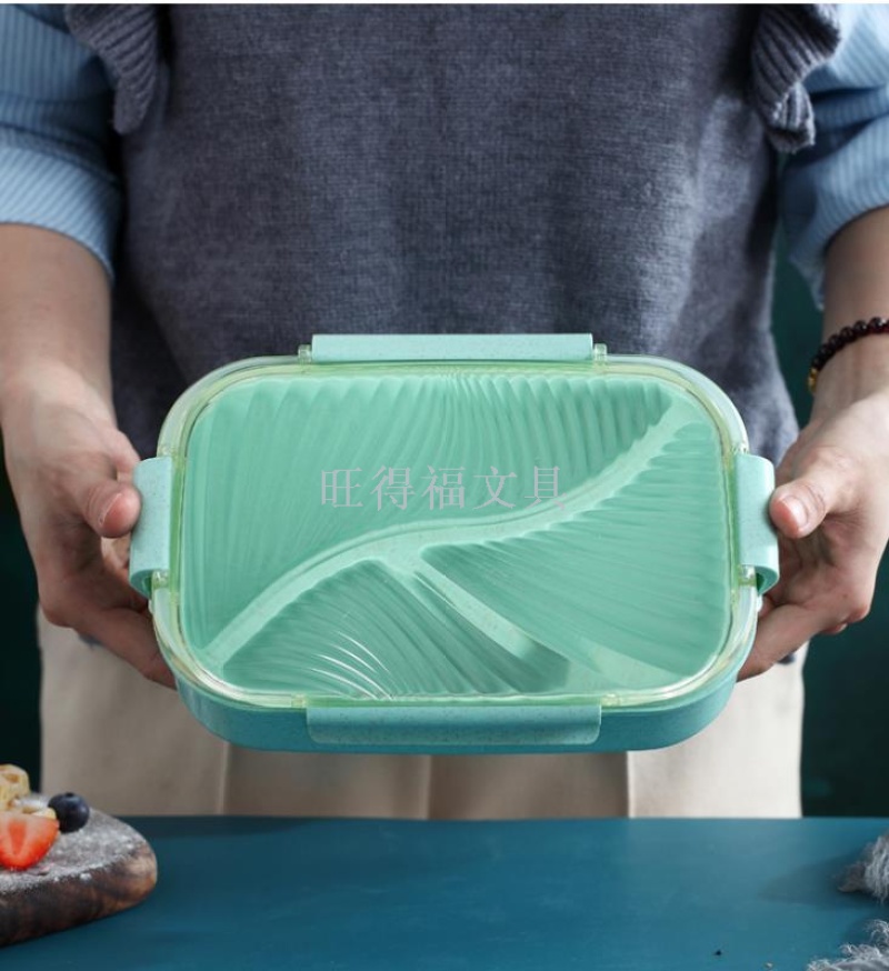 factory direct sales new lunch box lunch box lunch box wheat straw medium flat cover lunch box 750m 中文版