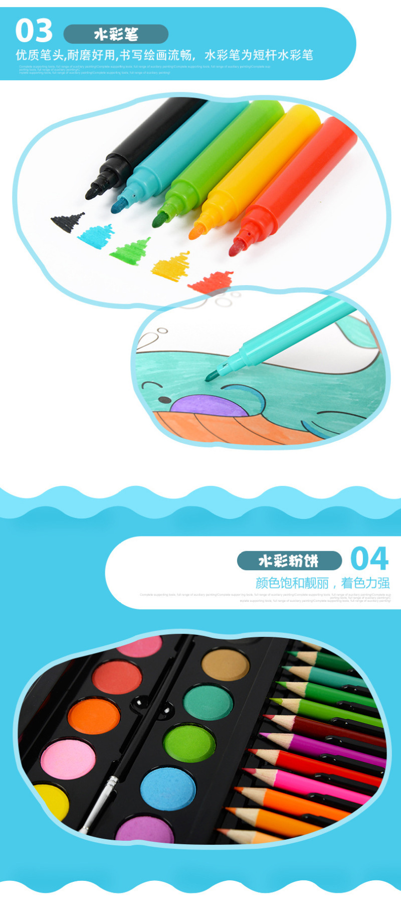 Export the Italian Set 150 installation, folding design to receive all kinds of colored pens, brushes and crayons... It's very convenient to travel from home and abroad