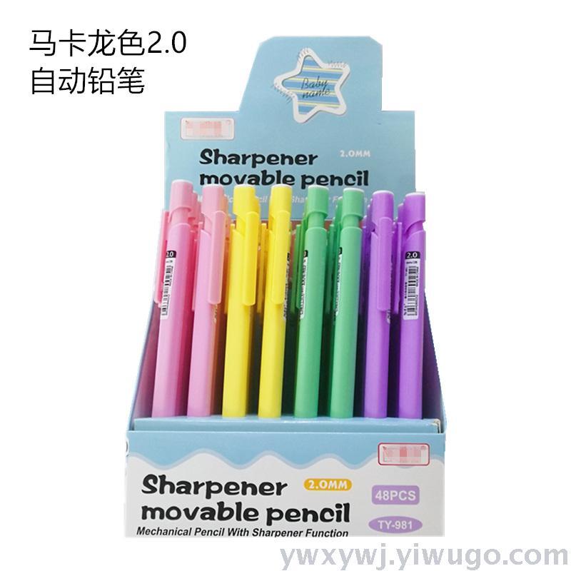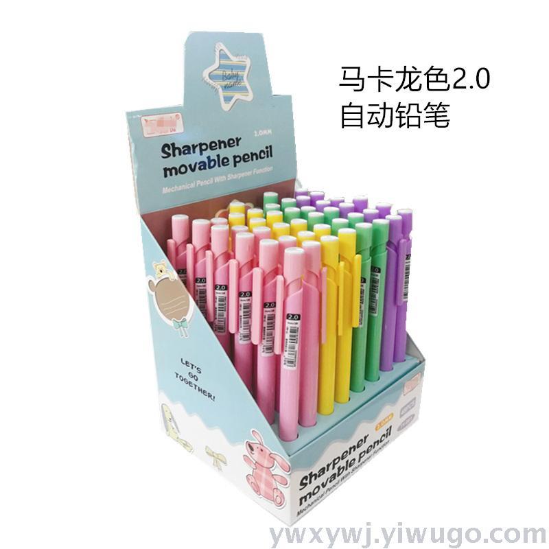 马卡龙色2.0自动铅笔自带卷笔刀头,学生写字画图好伙伴