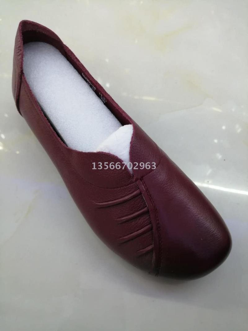 In Stock Women's Genuine Leather Shoes Comfortable Low Heel Soft Bottom All-Matching Fashion Casual Women's Leather Shoes 中文版