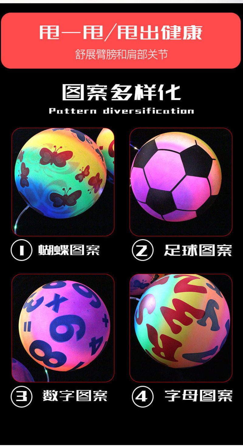 Luminous Fitness Swing Ball Portable Flash Bounce Ball Rainbow Color Hand Drop Ball Elastic Balloon Children's Toy Wholesale