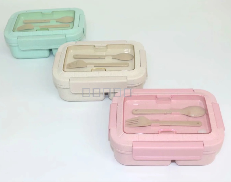 wheat straw open cover three-grid deepening lunch box lunch box lunch box