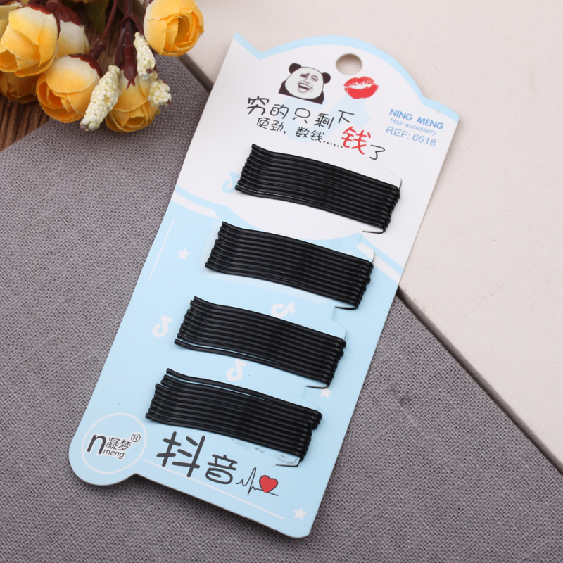 2 yuan store ornament cartoon hair clip bar shaped clip black paint-free basic hair clip girl fringe clip side clip 中文版
