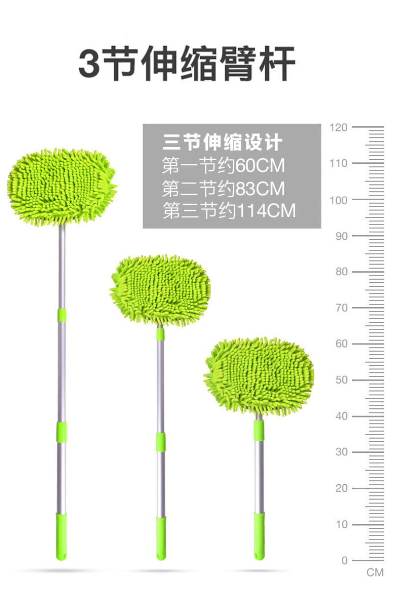 chenille car wash mop three-section telescopic adjustable aluminum rod car wash mop removable chenille gloves 中文版