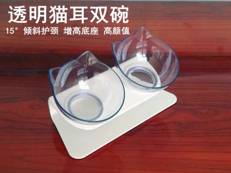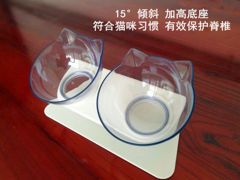 Cat Bowl Double Bowl Protective Spine Pet Dog Basin Dog Bowl Cat Basin Cat Food Holder Cat Food Rice Basin Bowl Oblique Bowl Cat Bowl Rack 中文版