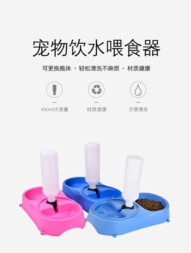 Pet Dog Bowl Basin Double Bowl Automatic Drinking Water Poodle Dog Food Bowl Cat Food Rice Basin Cat Supplies 中文版
