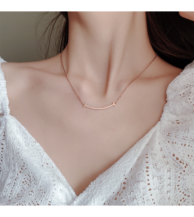 smiley face necklace female titanium steel non-fading pendant temperament niche cold wind clavicle chain korean internet celebrity necklace ornament 中文版