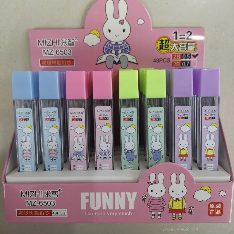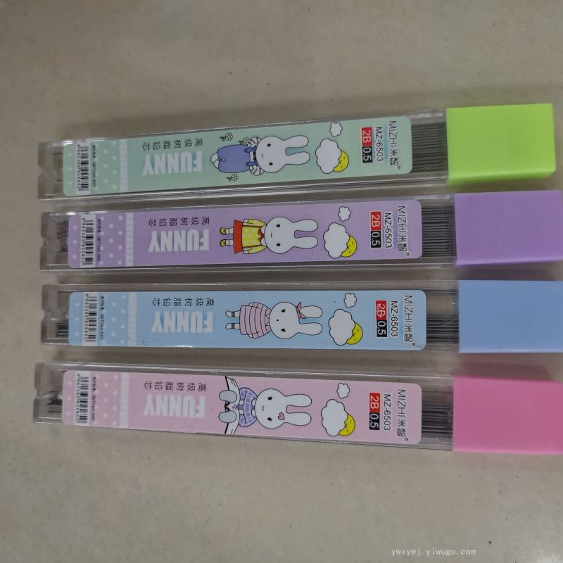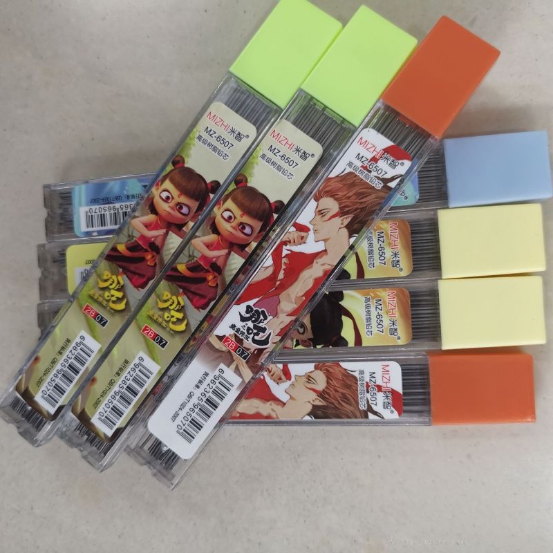 厂家直销100长高级树脂铅芯,笔芯合上贴卡通图案,有三种图案供选择,展示合包装,一合装48管,一箱2304管,一管装20支100长树脂铅芯,现货供应,实体店位于浙江义乌国际商贸城三区51号门23896摊位,实体店主要销售各种款式 铅笔芯及活动铅笔,还有小中学生卡通造型水笔圆珠笔,也可定做各种造型组合文具,欢迎光临!