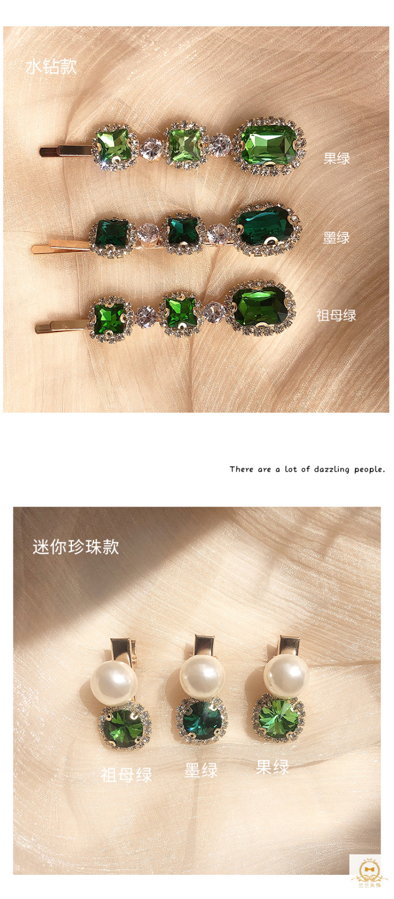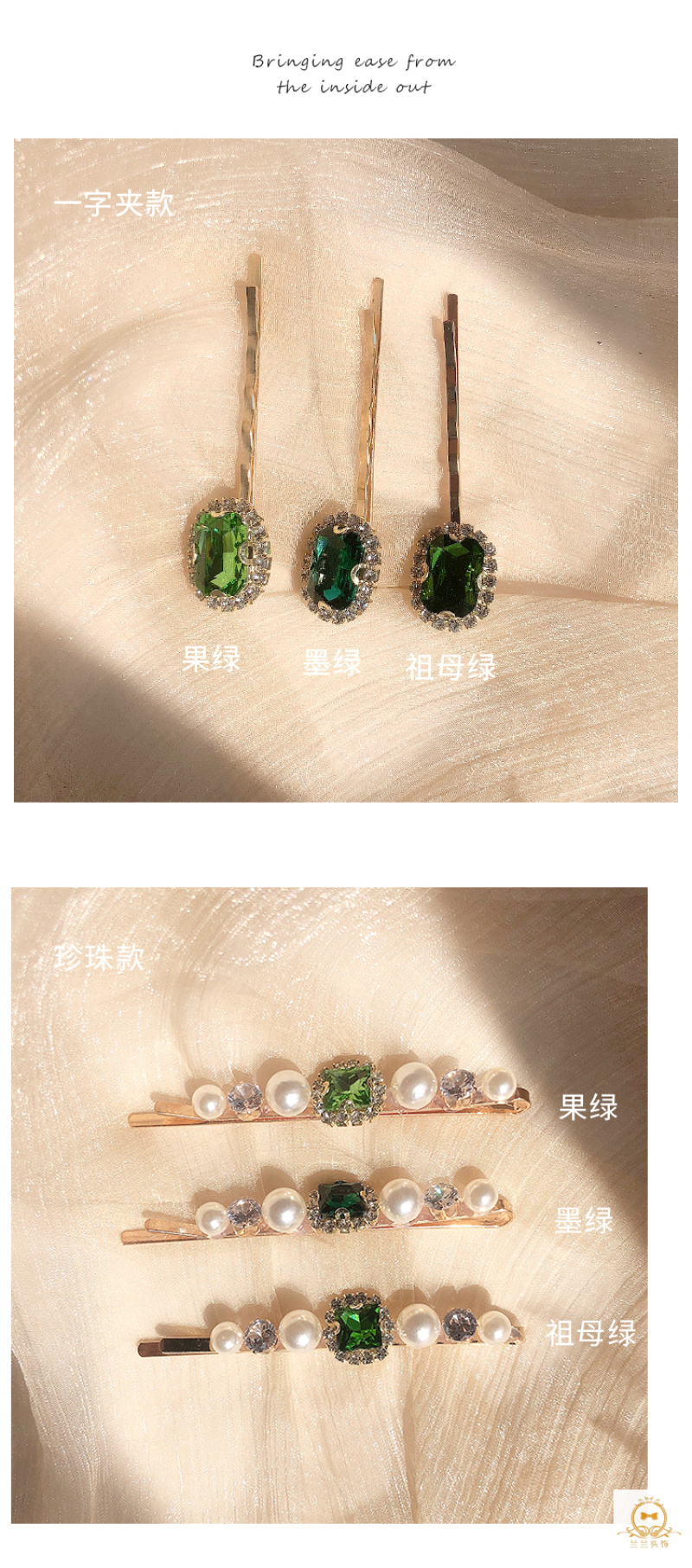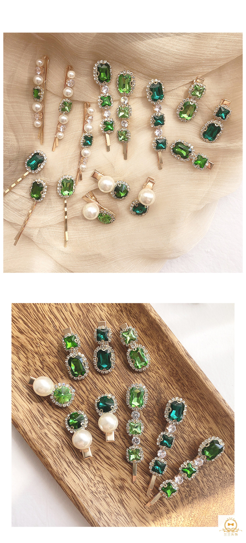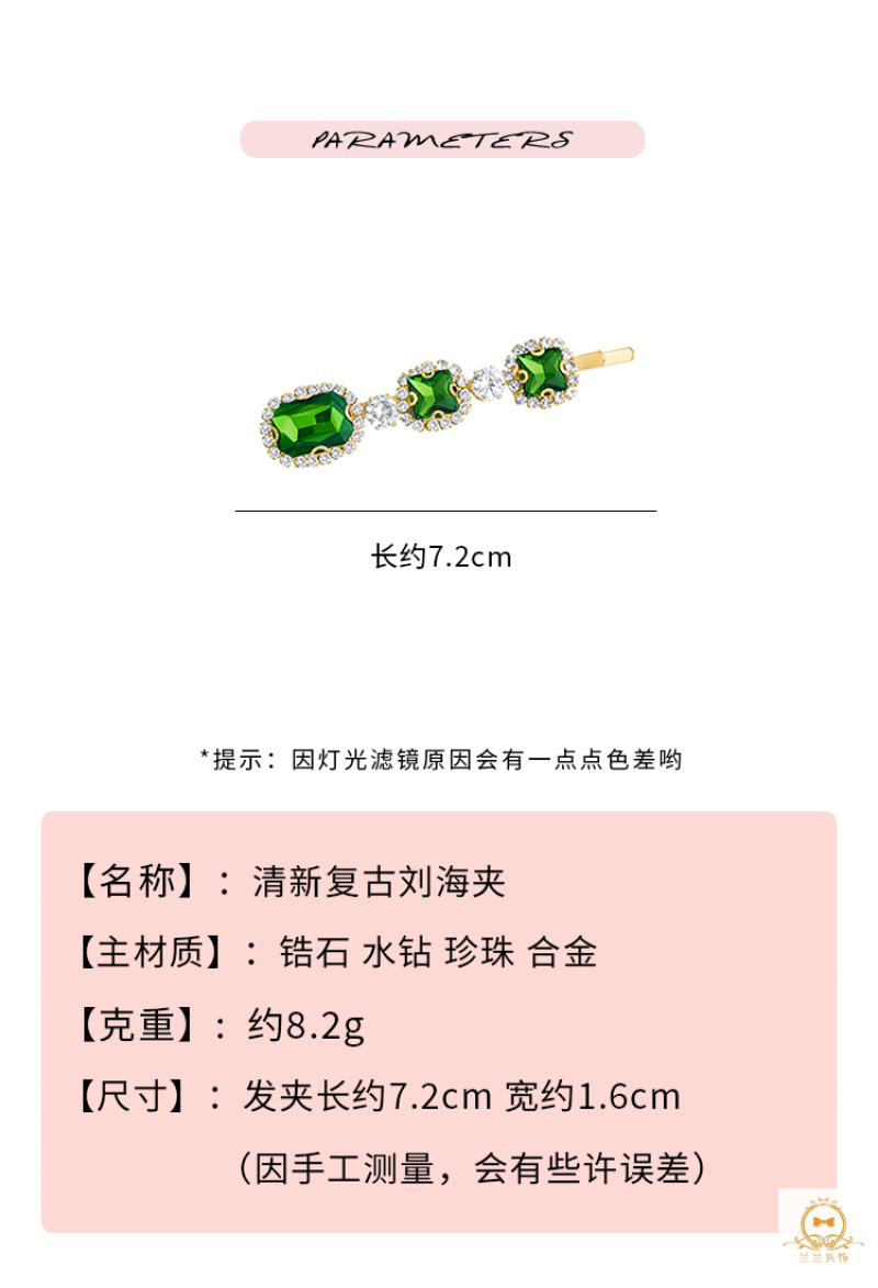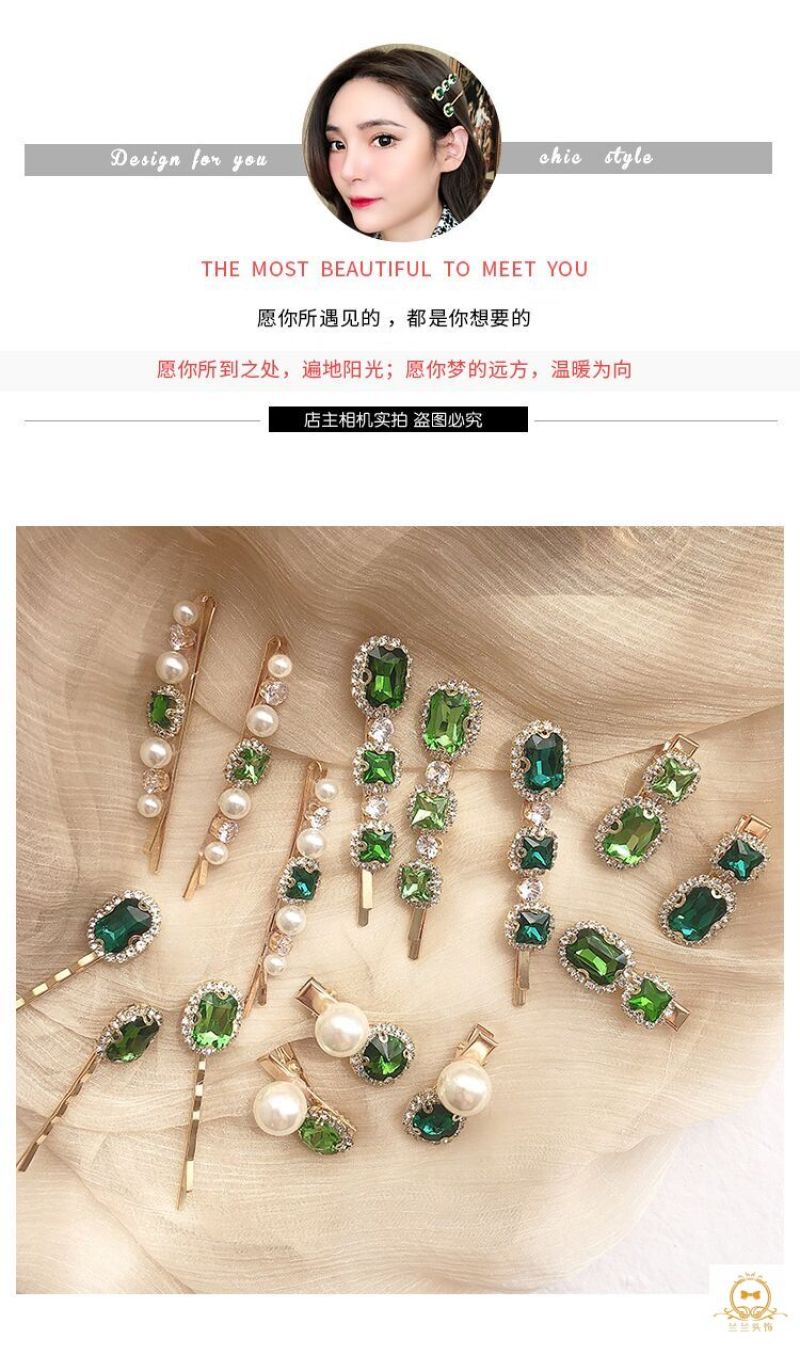 emerald pearl cropped hair clip women's retro temperament word clip side adult headdress korean hair accessories 中文版