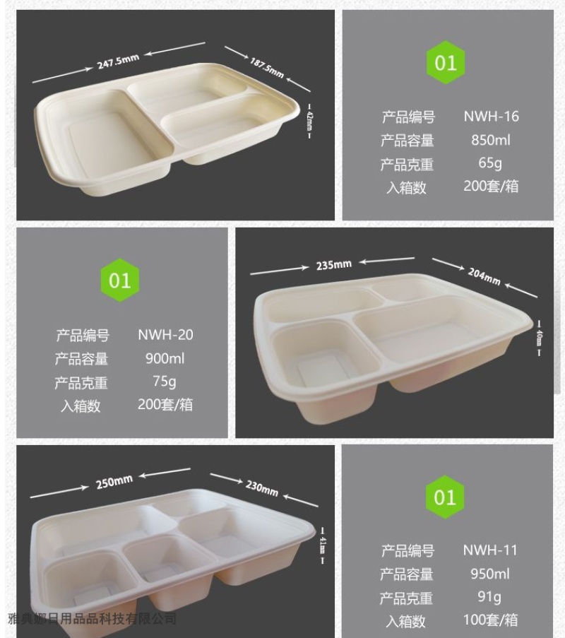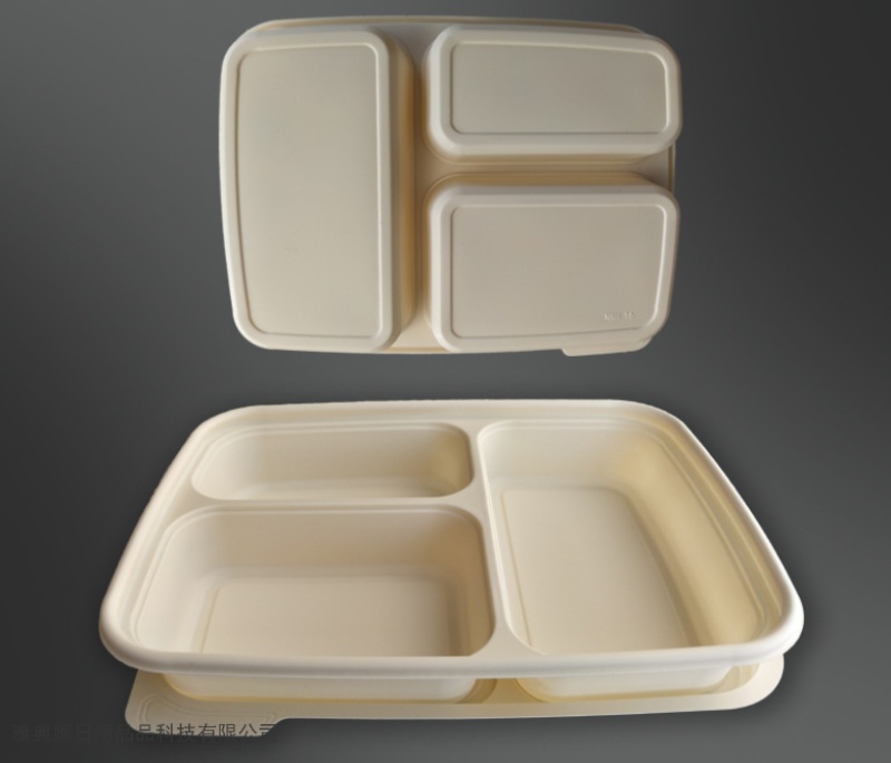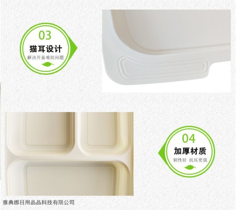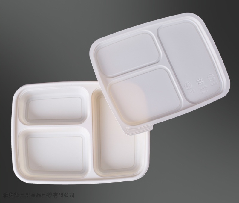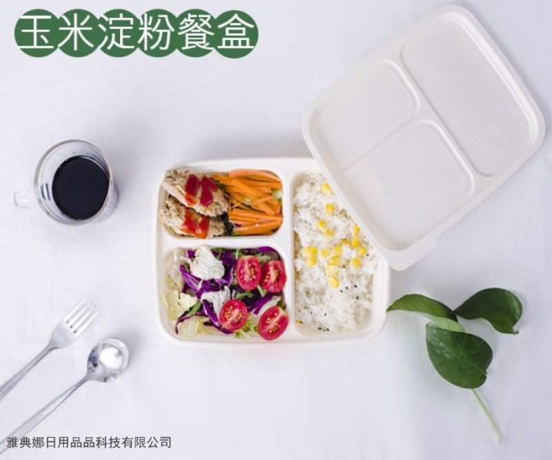 corn starch disposable lunch box three-grid environmentally friendly degradable starch-based packaging take-out box