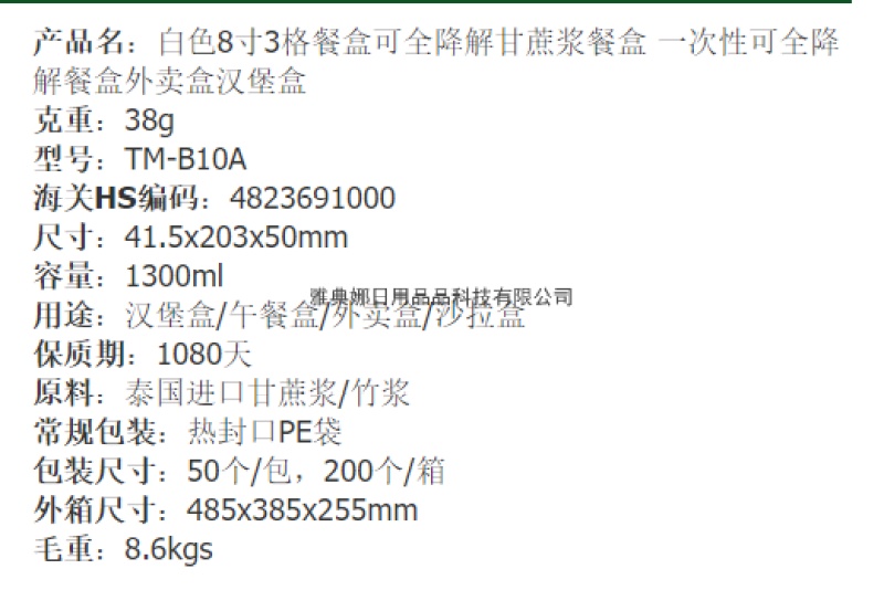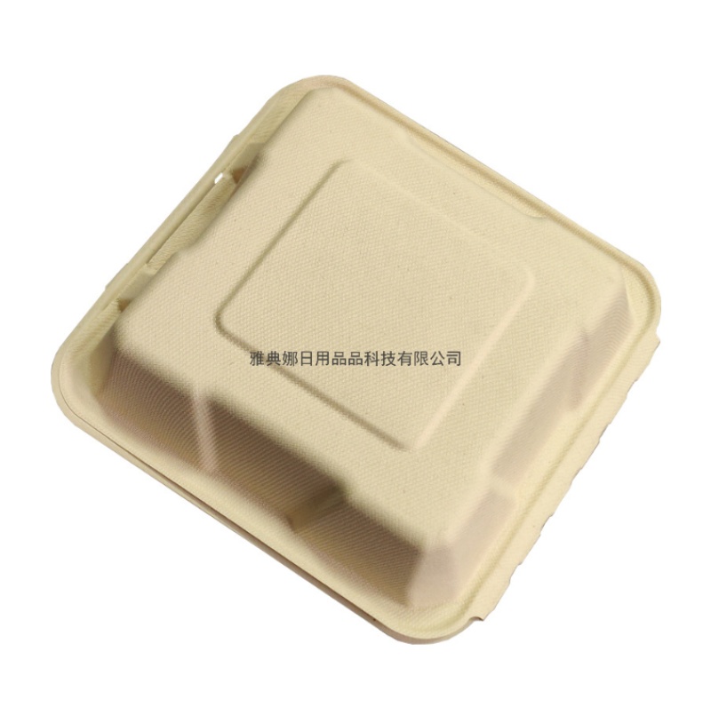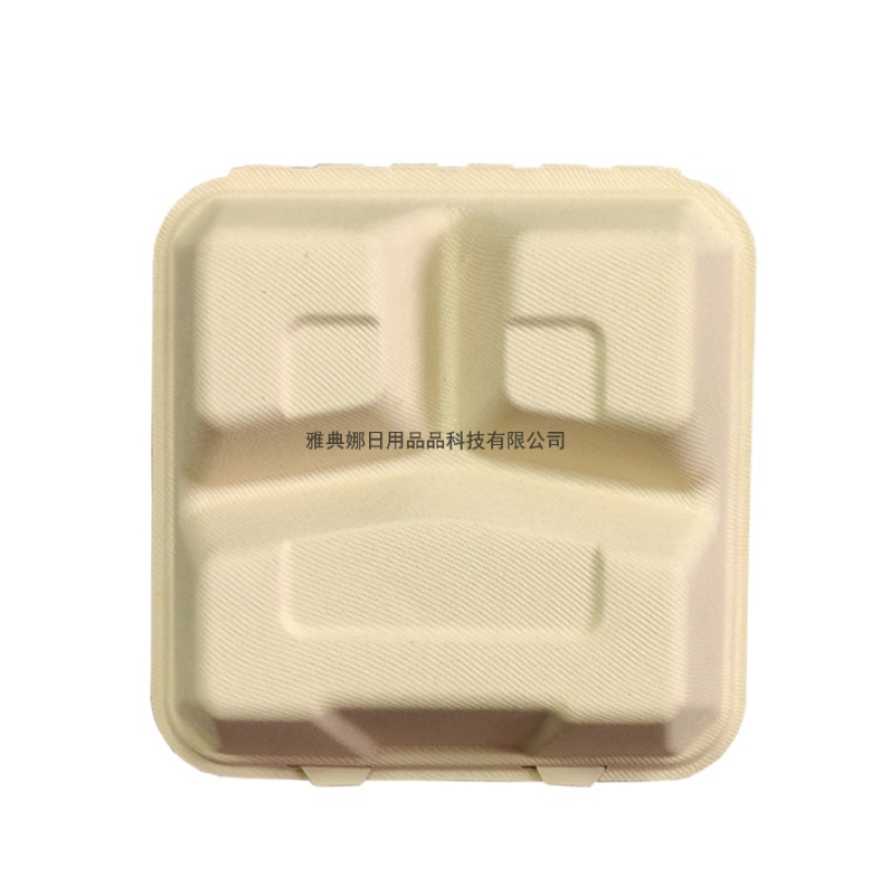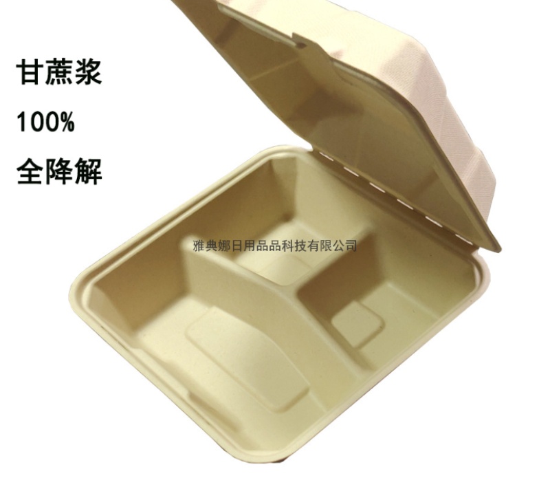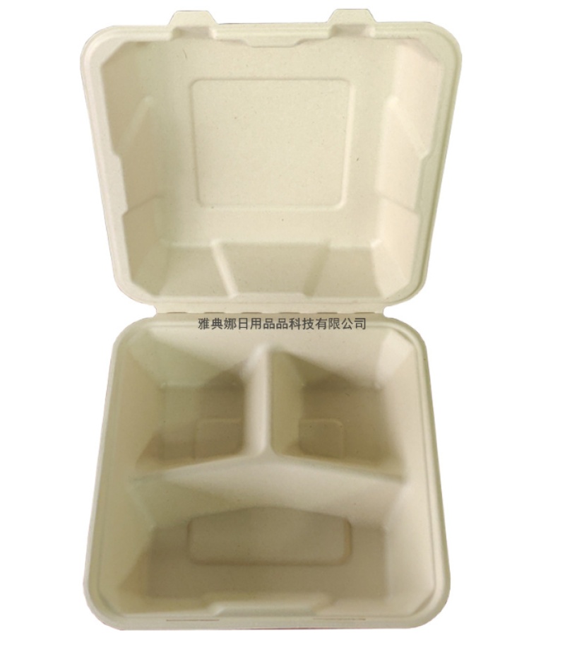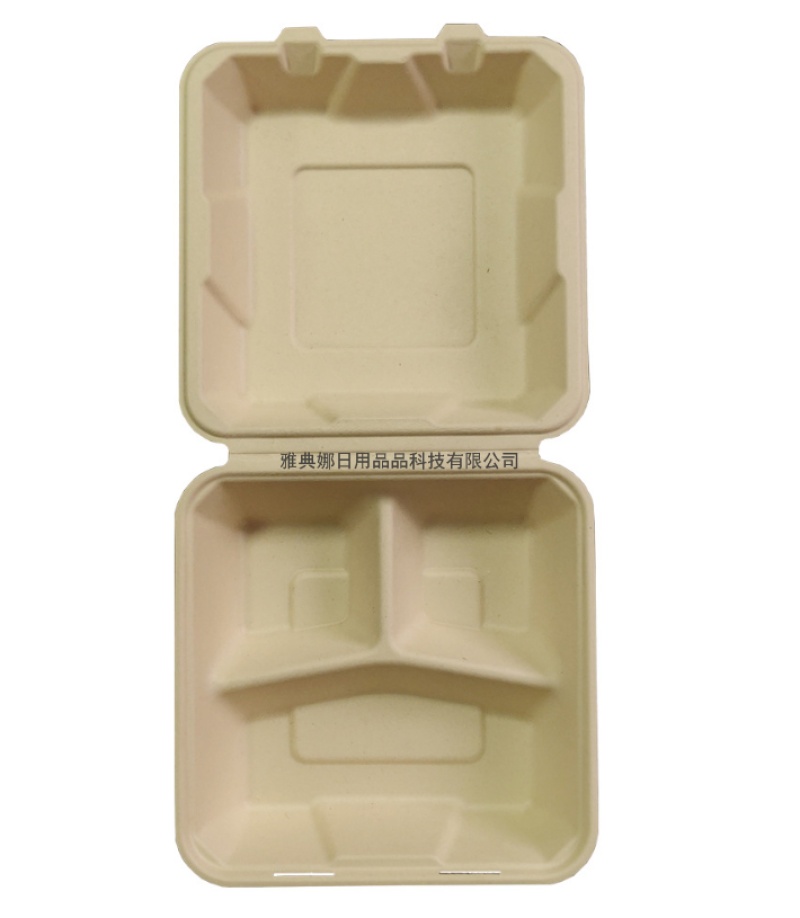 8-inch 3-grid disposable biodegradable sugarcane pulp lunch box take out take away hamburger box lunch box 中文版