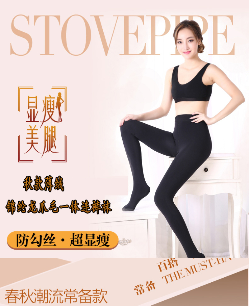 Women's Anti-Pilling Belly Holding Slim Autumn New Thin Velvet Nylon Dragon Claw Wool One-Piece Pantyhose Wholesale 中文版
