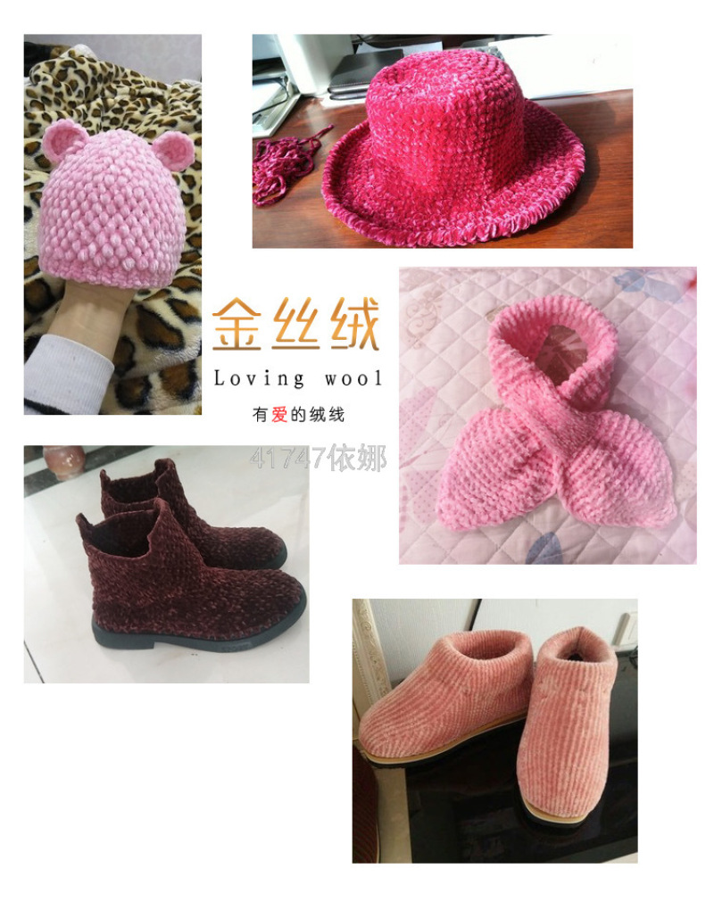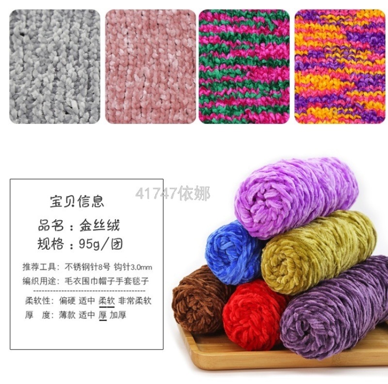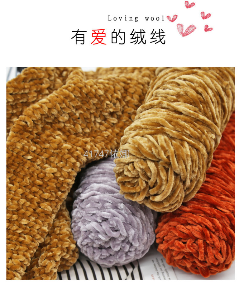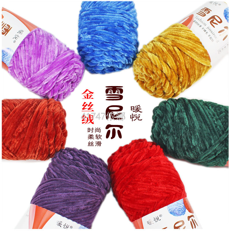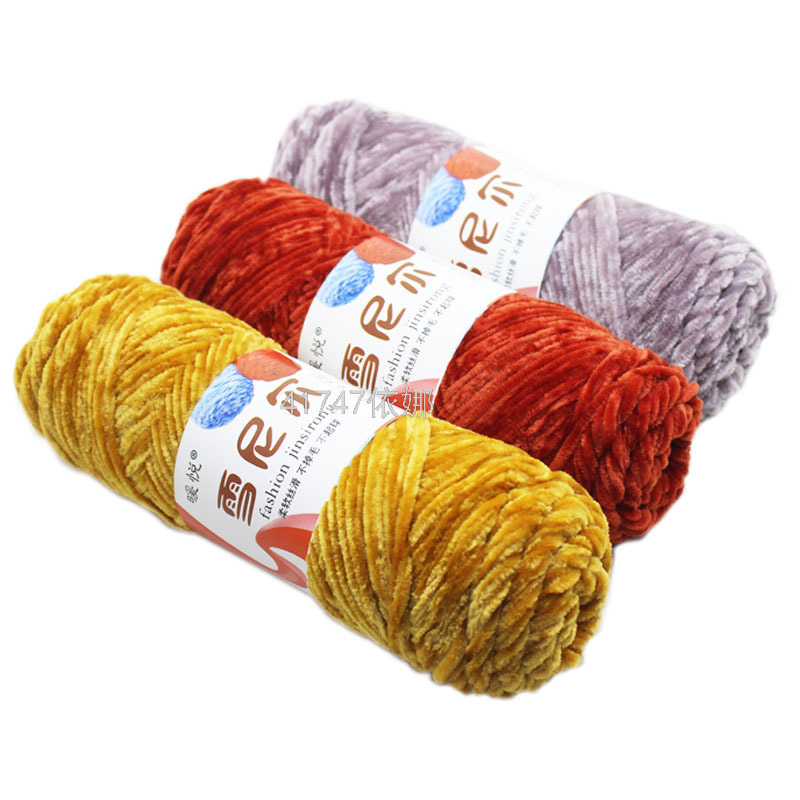gold velvet wool ball chenille handmade diy woven scarf thick thread violent bear material package crochet hook slippers 中文版