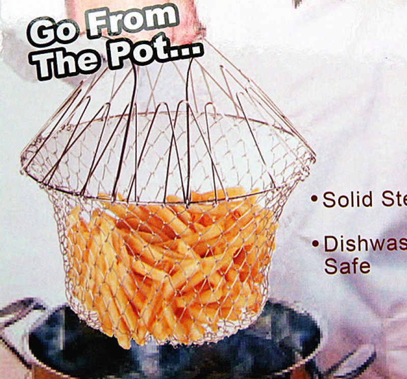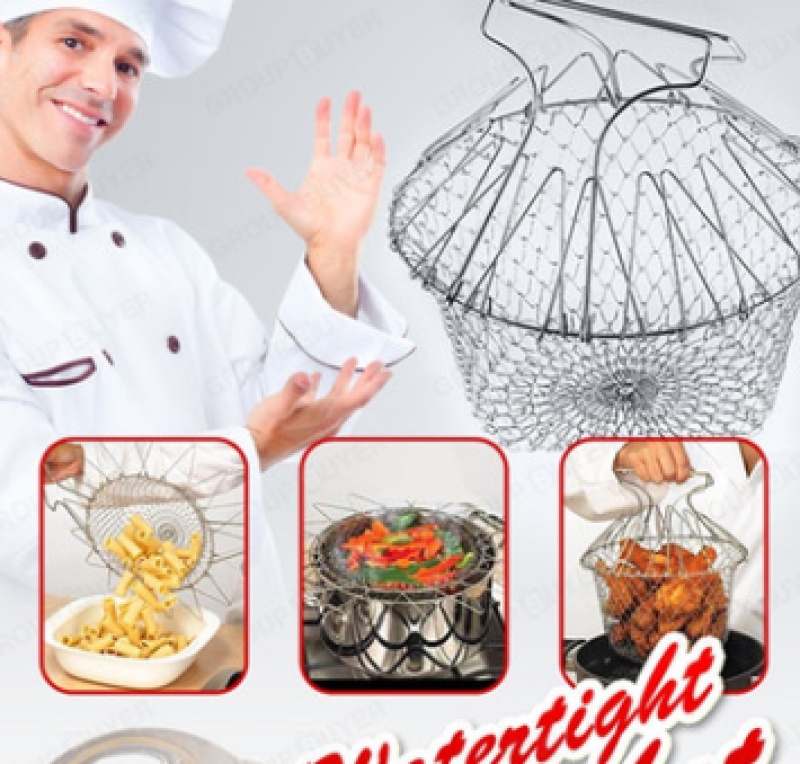 Chef's Basket, also known as a folding basket, is a new and convenient way to make kitchen work faster and simpler. It appears to be a flat mesh at first glance, but when you gently pull it apart, it quickly transforms into a flexible basket, allowing you to safely steam and fry various foods. Even when hot water and oil are boiling rapidly in the pot, this special design allows you to remain calm and handle the situation. At this time, you can safely remove the chef's basket from the pot, swing it to the left and right, and the boiling water or hot oil will drain out. It's perfect for cooking noodles, shellfish, vegetables, fried chicken, and almost anything else. This is always the best way to cook an egg. And there's more! Flip the handle, and it becomes a free-standing slotted spoon. You can place the food you want in the chef's basket and rinse it with water, then pick it up. After a simple fold, it can be conveniently stored anywhere.