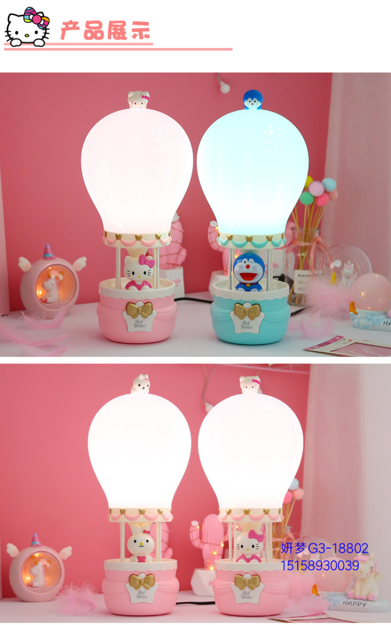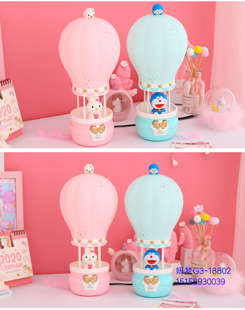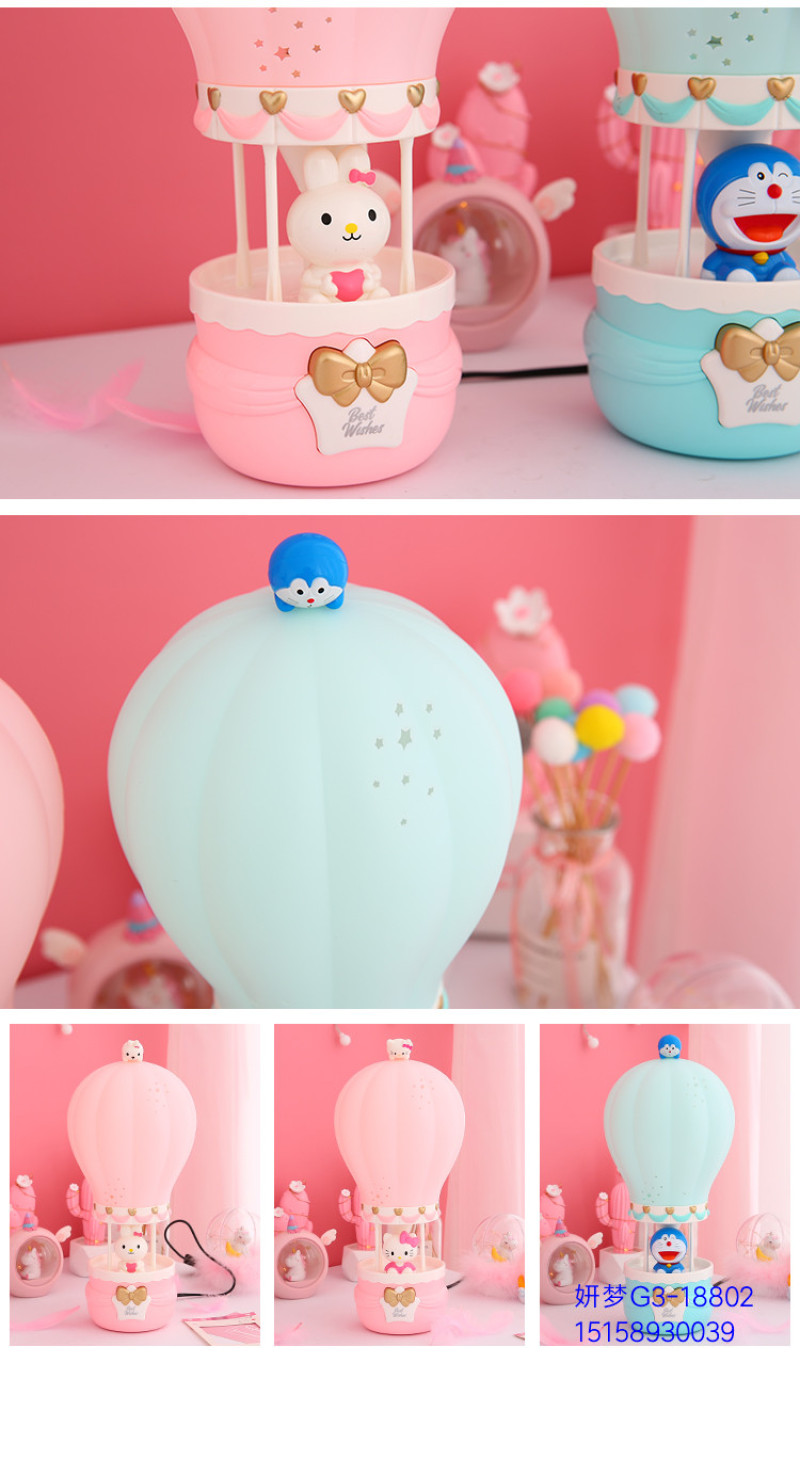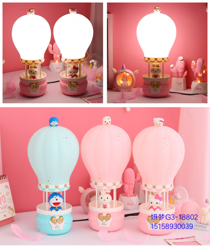 Creative Hot Air Balloon Plug-in Cartoon Bunny Night Light Bedroom Bedside Table Lamp for Free Children's Birthday Gifts Cute