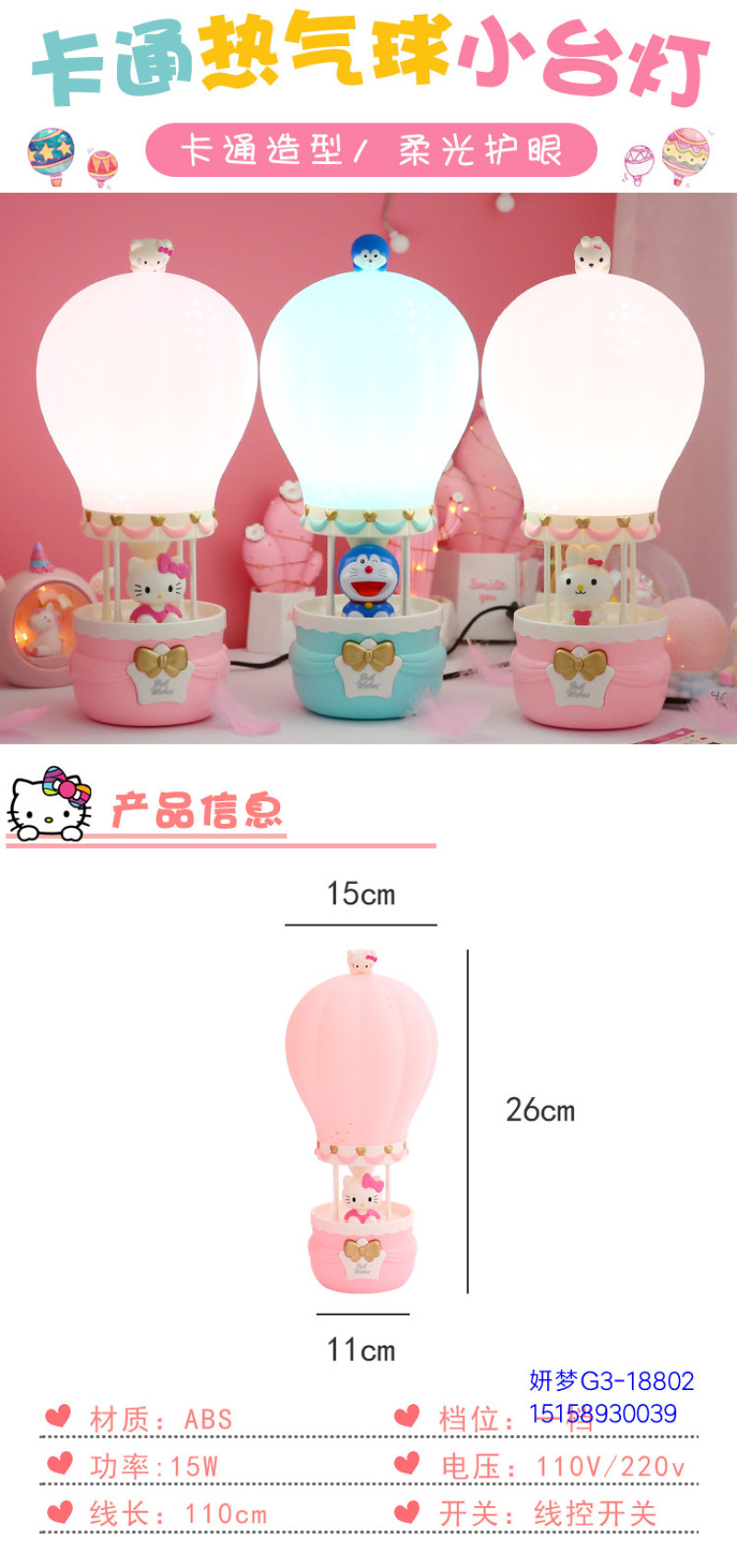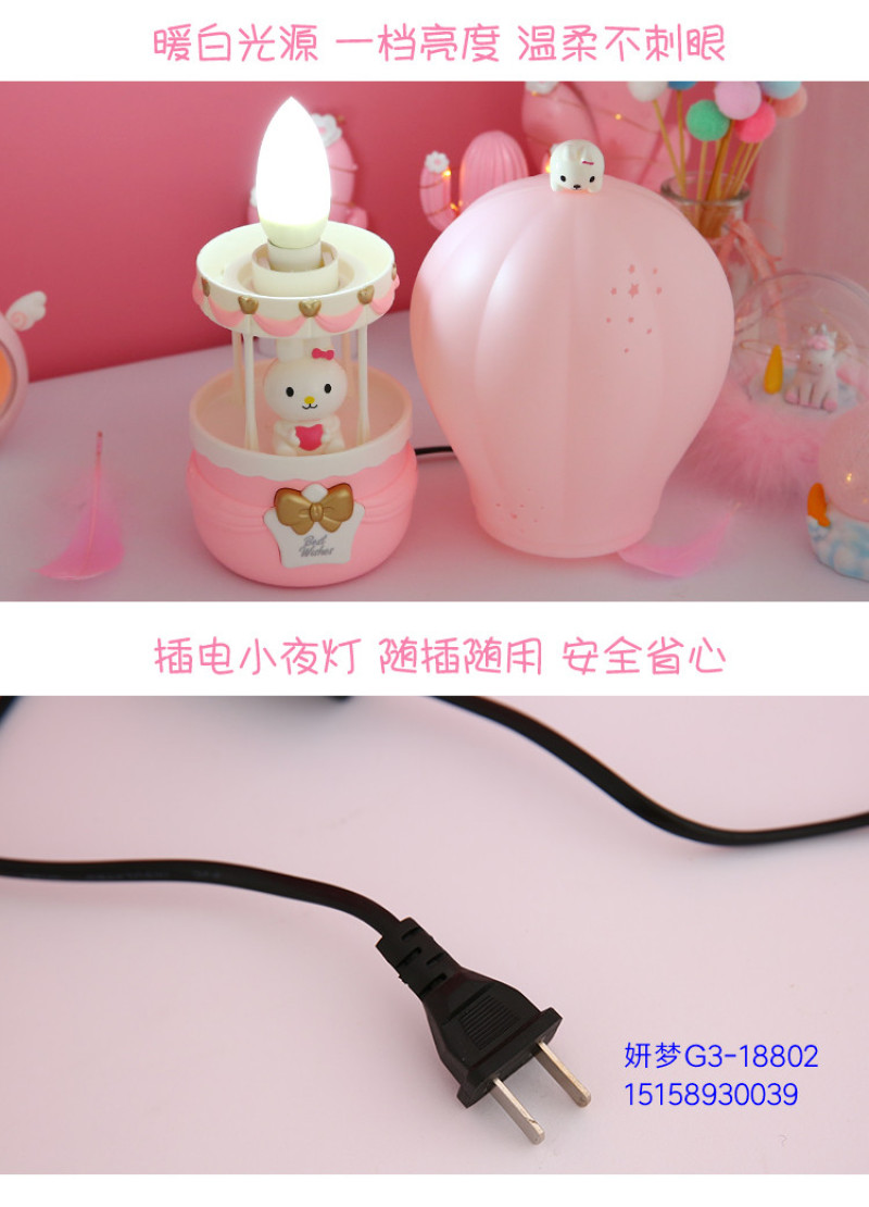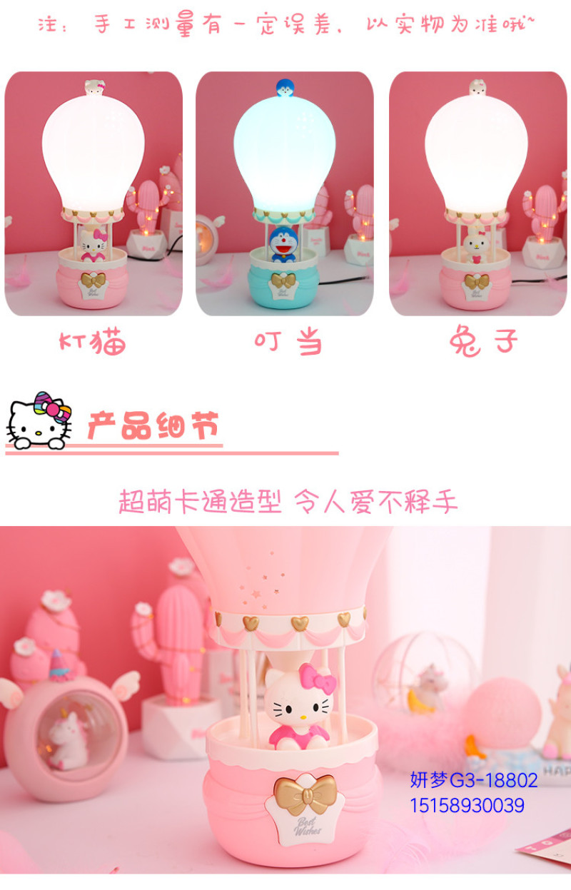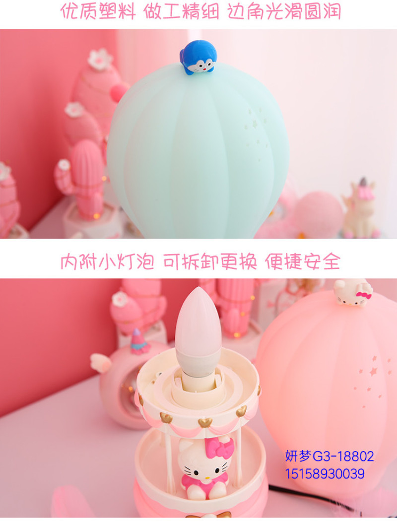 Creative Hot Air Balloon Plug-in Cartoon Bunny Night Light Bedroom Bedside Table Lamp for Free Children's Birthday Gifts Cute