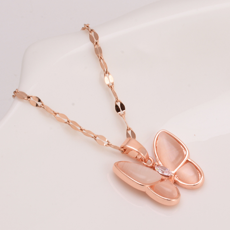 creative style cross-border necklace european and american personalized opal butterfly pendant female elegant white fritillary necklace factory direct sales 中文版