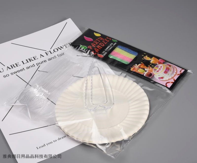 cake transparent four-in-one birthday cake knife and fork paper pallet suit birthday paper pallet beige knife and fork