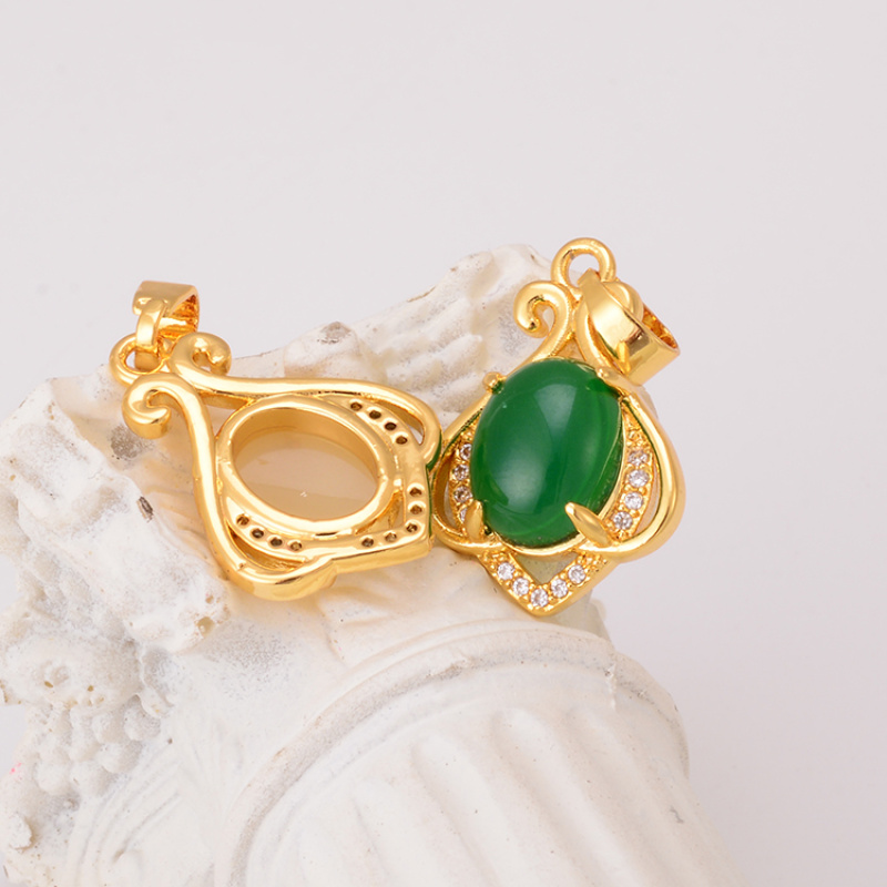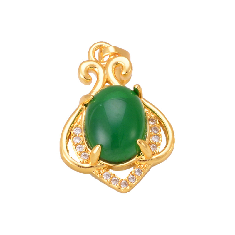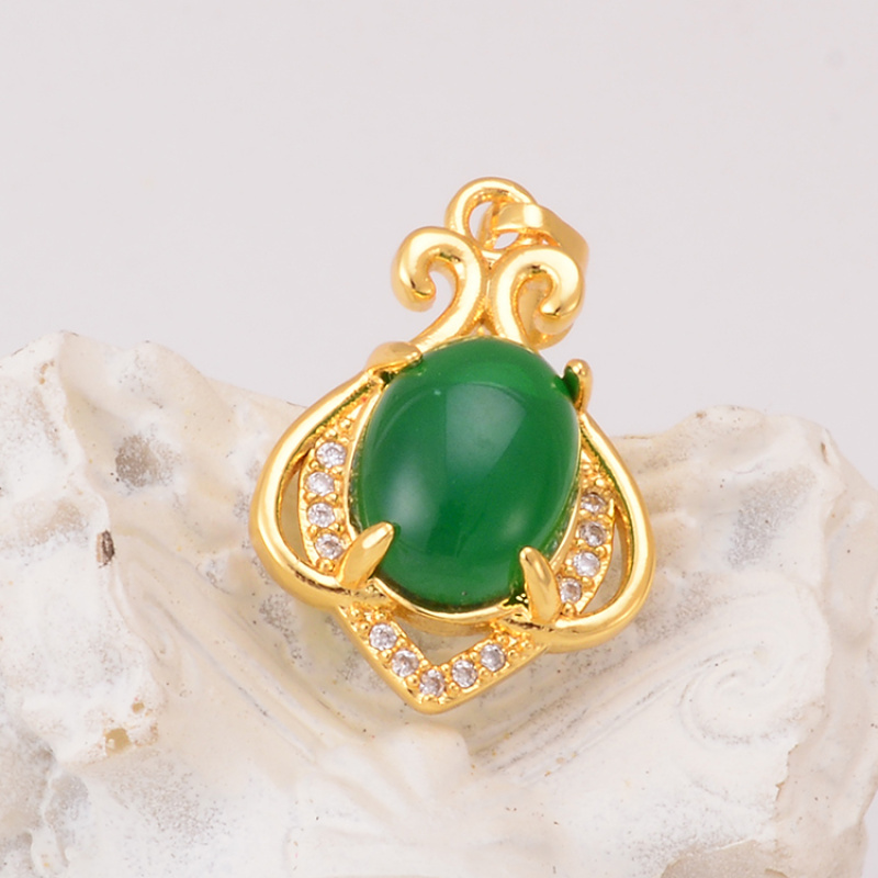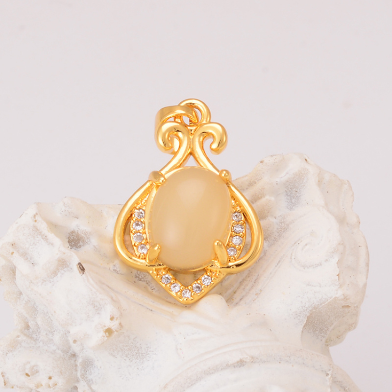 simple retro palace style hollow carved necklace 925 silver egg-shaped african opal temperament pendant direct sales wholesale 中文版