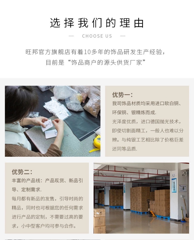 A、Product Advantages: All the materials used in our jewelry are imported soft white copper, eco-friendly copper, and refined silver.