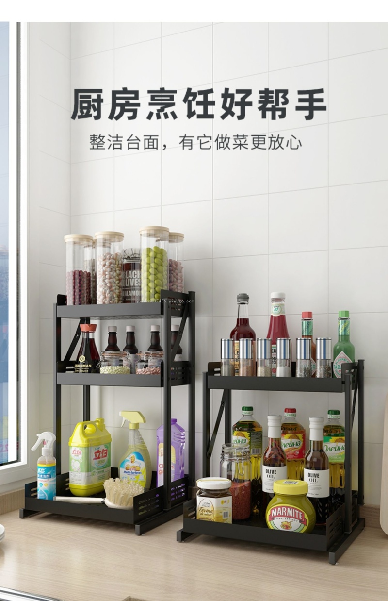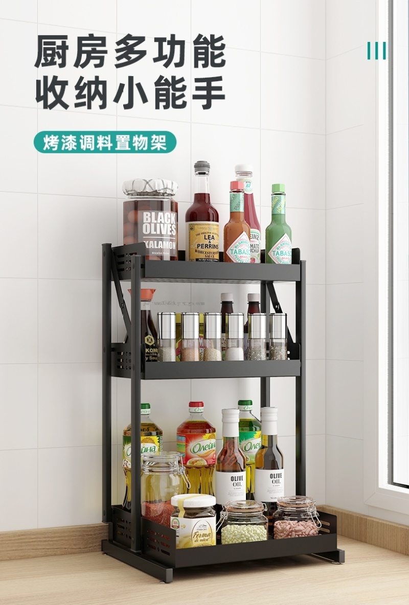 【Product Name】: Two-tier Seasoning Rack Three-tier Seasoning Rack 【Product Model】: A979 A980 Product Size: 34*29*38, 34*29*55 【Product Packing】: 1 pieceper box 【eachPacking"]