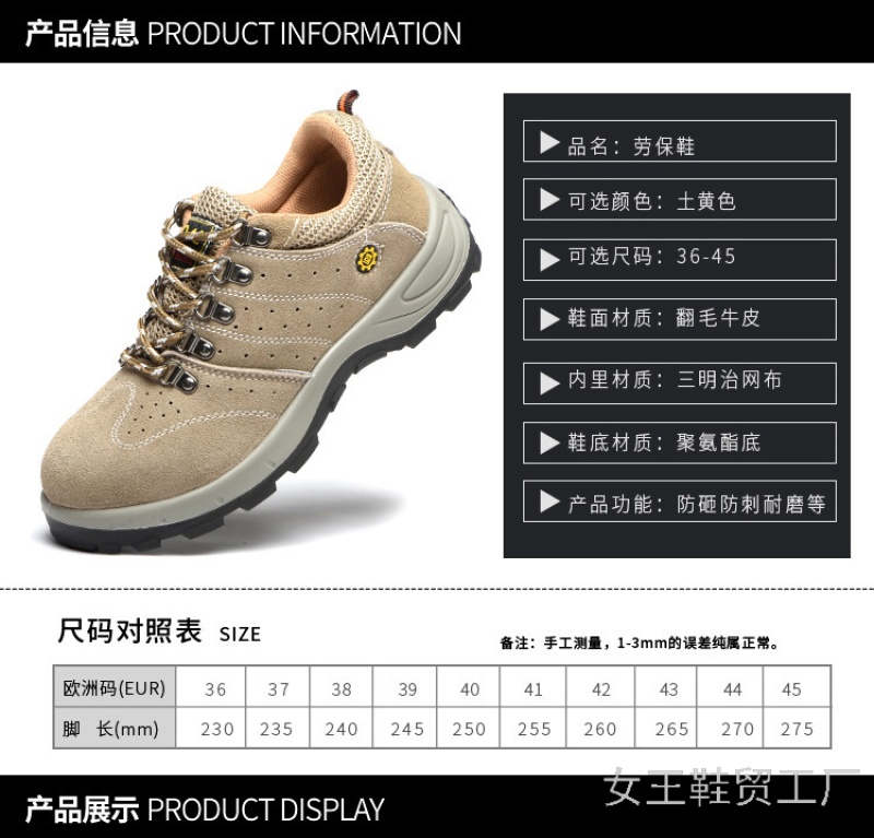 foreign trade large size wholesale spring and summer breathable anti-smashing and anti-stab safety shoes suede construction site men's shoes men shoe 中文版