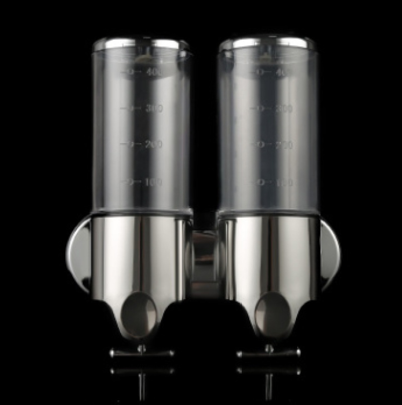 double-headed transparent soap dispenser stainless steel tension-pressure soap lye box wall-mounted manual soap dispenser 中文版