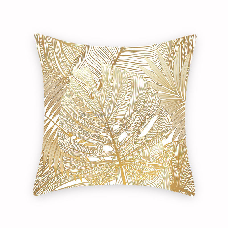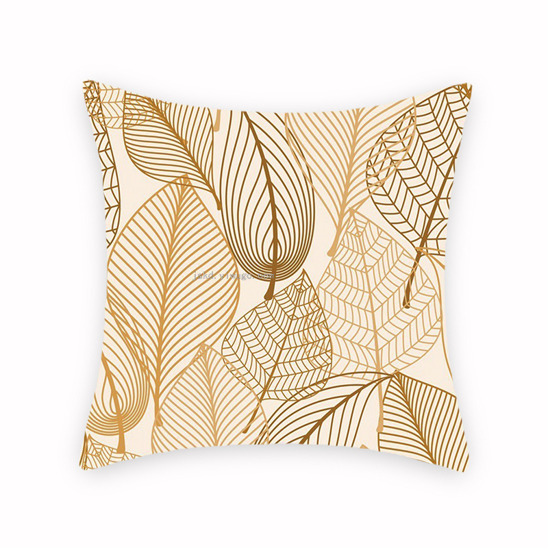 New Gilded Geometric Leaves Pillowcase Minimalist Creative Pillowcase Office Sofas Cushion Graphic Customization 中文版