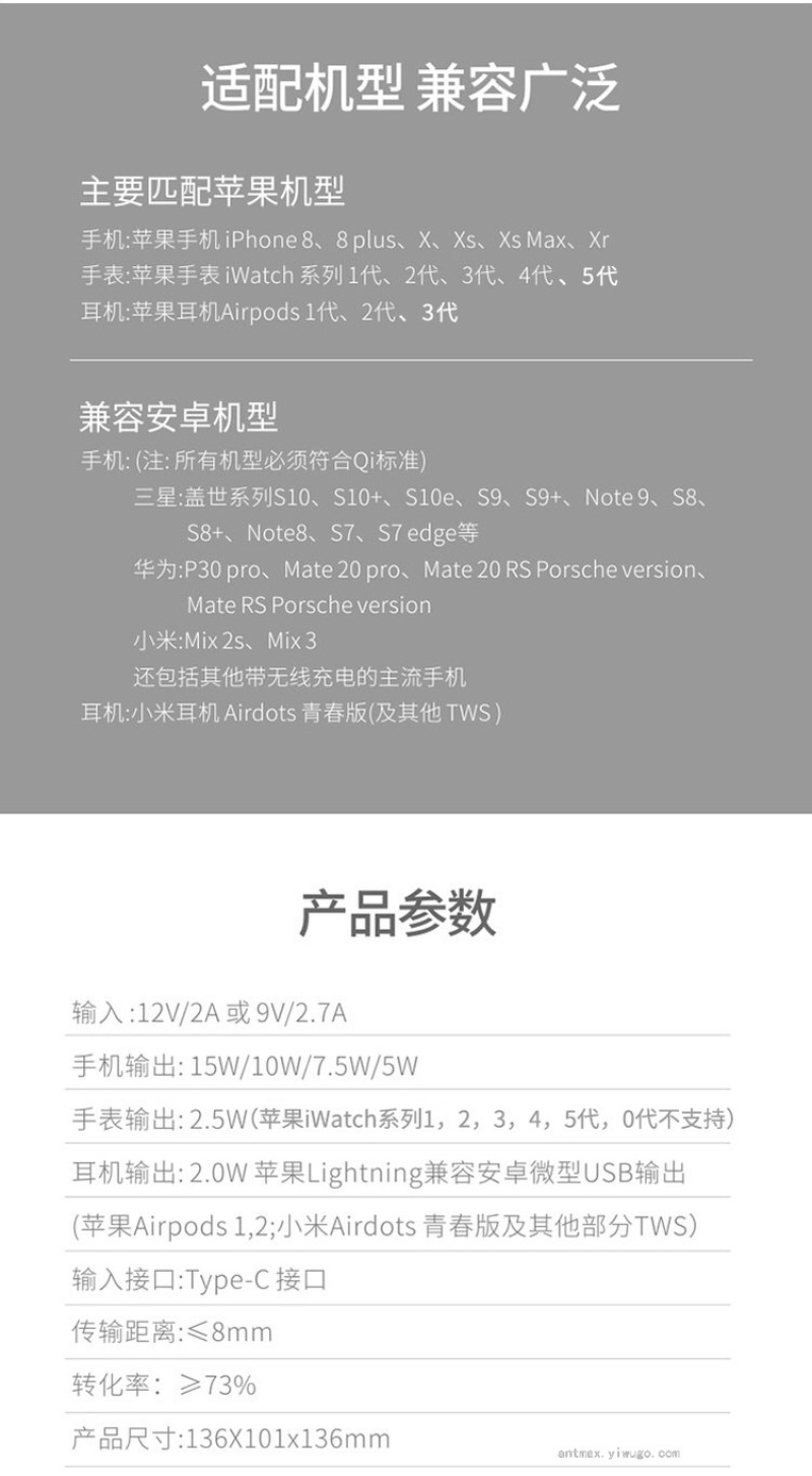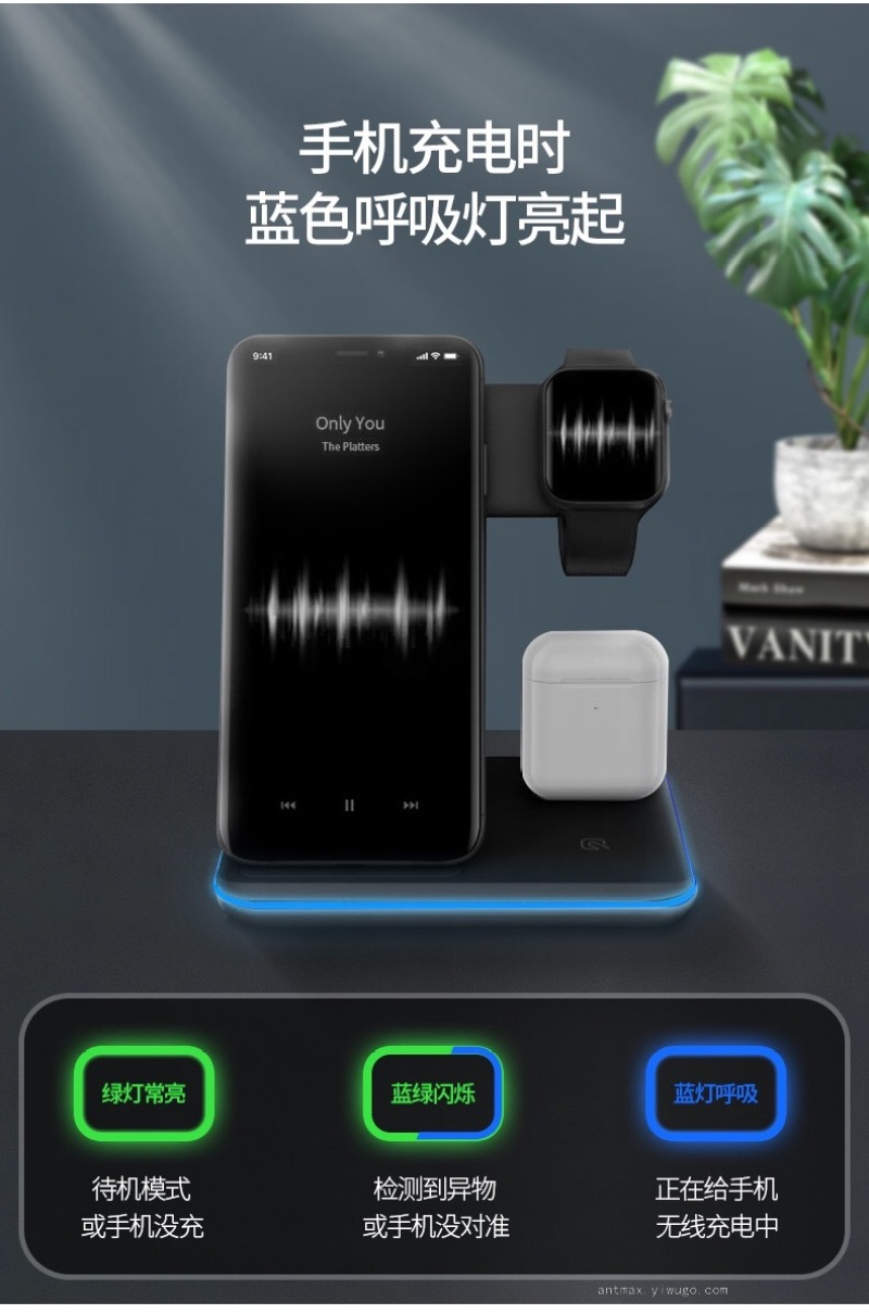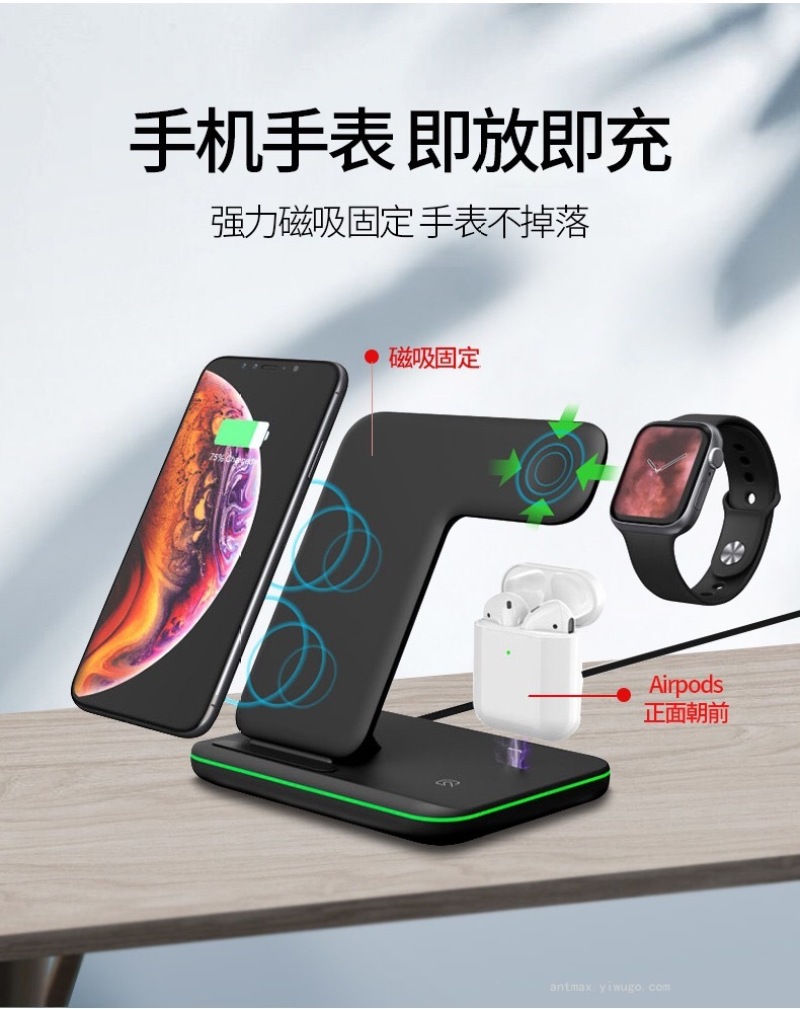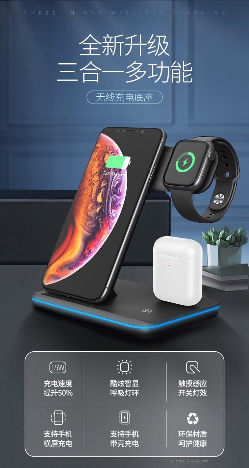 Apple Watch Bluetooth Headset Three-in-One Wireless Phone Charger LED Indicator 15W Fast Charge