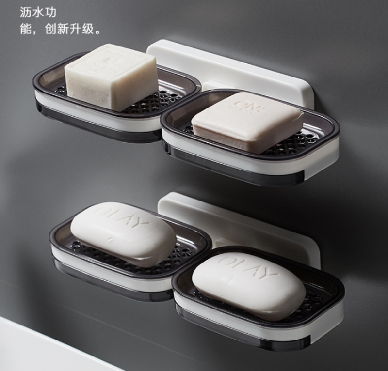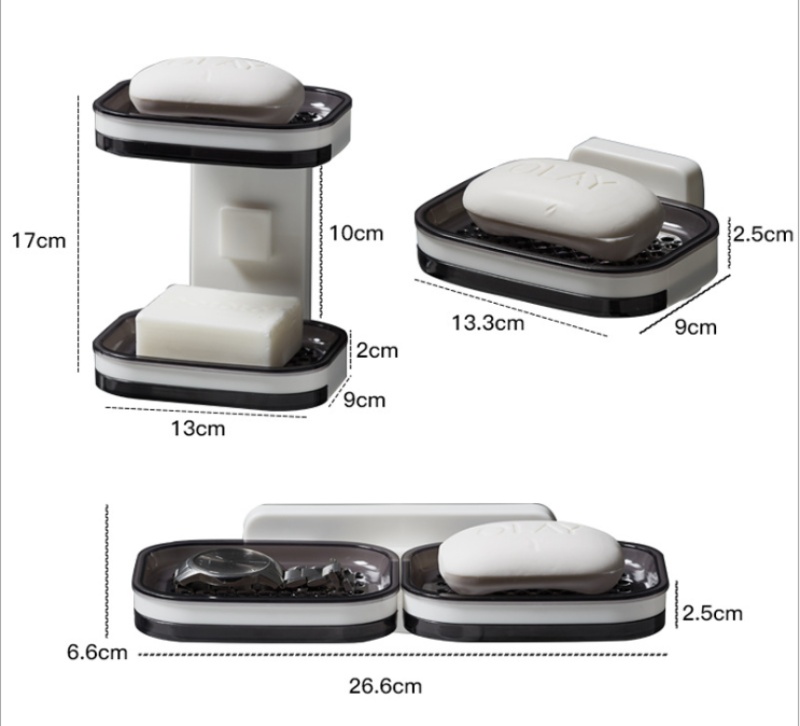 Soap Dish Suction Cup Wall-Mounted Creative Drainage Rack for Home Use with Double Compartments, Bathroom, Double-Layer, Bathroom, No Drilling Needed, Soap Holder