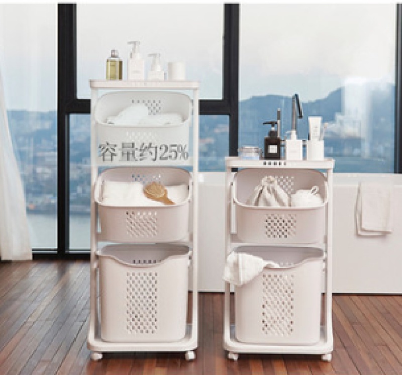 Laundry Basket Home Storage Basket Miscellaneous Items Three-layer Handheld Dirty Clothes Basket Household With Casters Dirty Clothes Basket Plastic