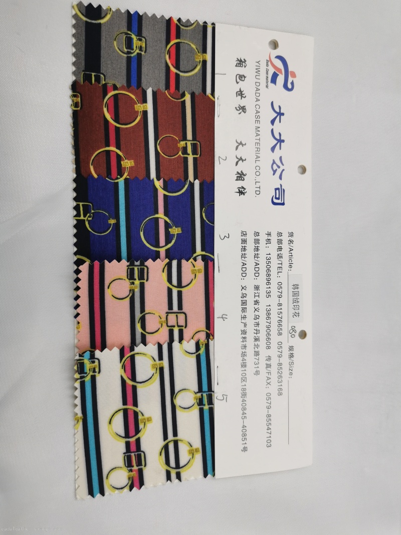 Large luggage material, Zhejiang luggage material industry leading enterprise, production and operation: leather/ pvc leather, artificial Leather, PU leather leather, pvc leather, leather printing, oxford cloth, transfer printed leather(Transfer leather), printed cloth, non-woven fabric, faille leather, satin, all kinds luggage fabric, luggage accessories, box and bag hardware accessories and other luggage materials. If you are looking leather manufacturer, leather wholesale, yiwu artificial leather information, please remember to contact us.