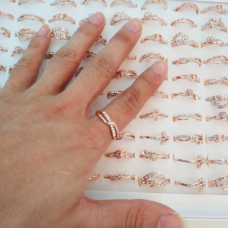 玫瑰金色镶钻女士戒指
