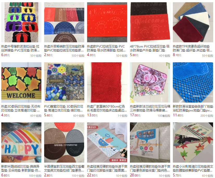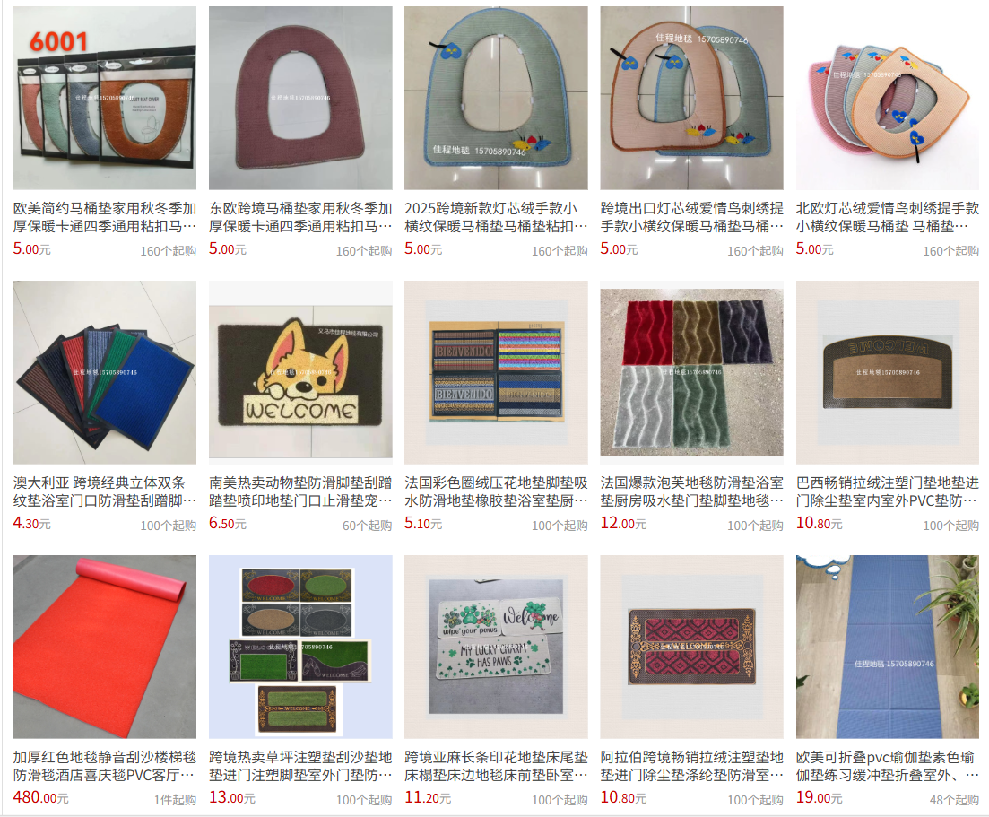 Cross-border export surplus stock carpet floor mats street vendors supply factory wholesale distribution agent toilet hall door mat