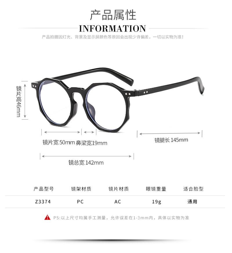 New Anti-Blue Ray Glasses for Men and Women Same Plain Glasses round Glasses Frame European and American Retro Full Rim Frame Factory Wholesale