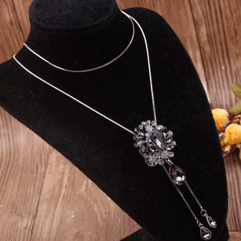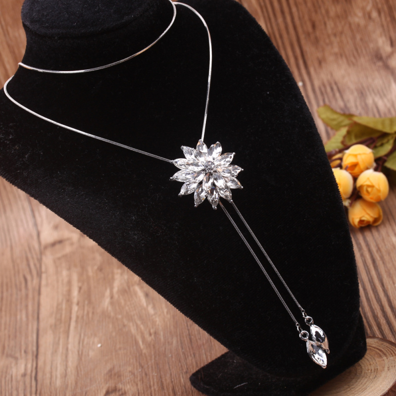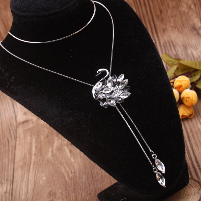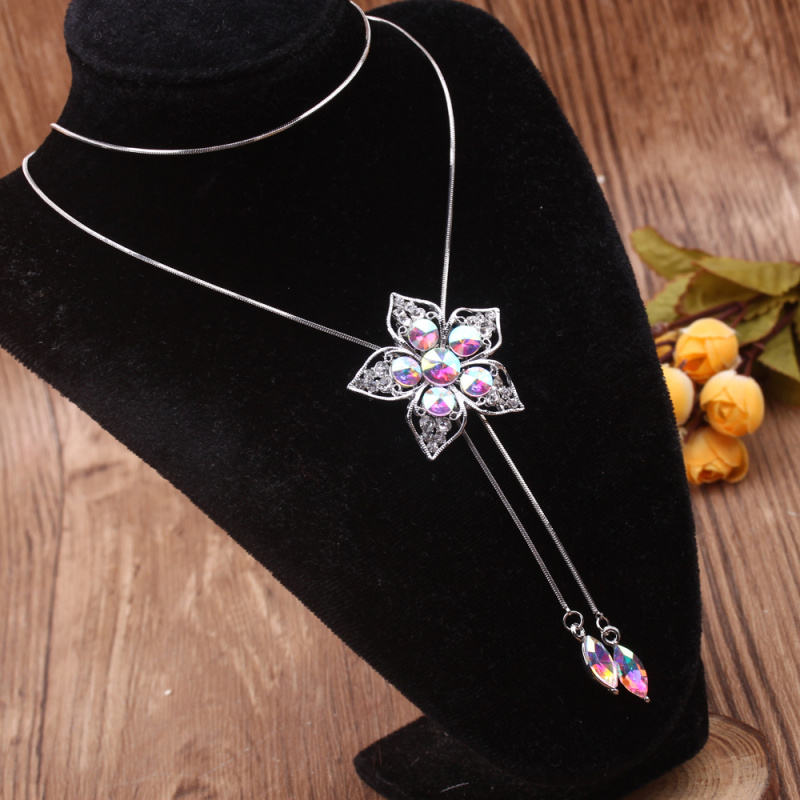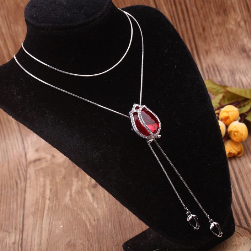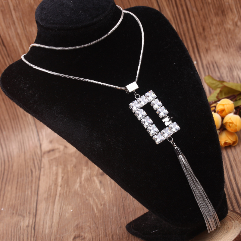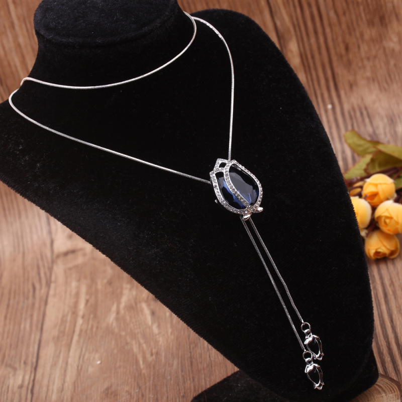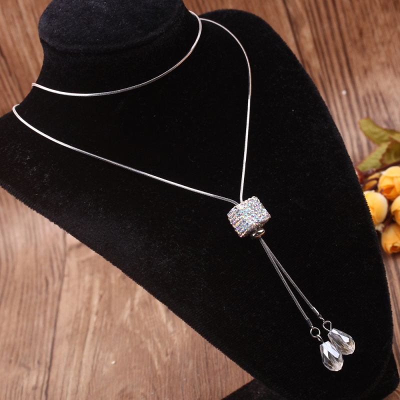 stall boutique jewelry fashion simple fashion net red neck chain bone chain long jewelry women's crystal necklace pendant lock 中文版