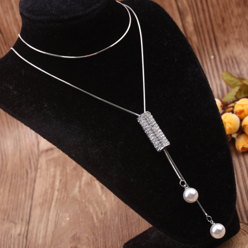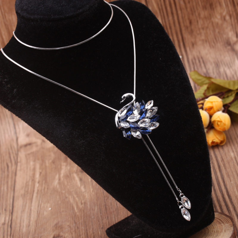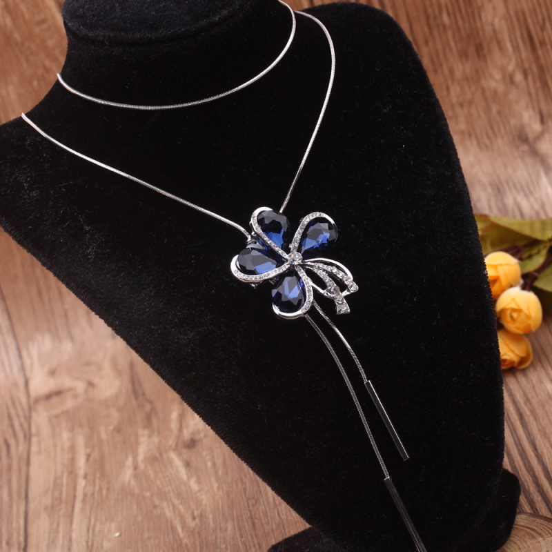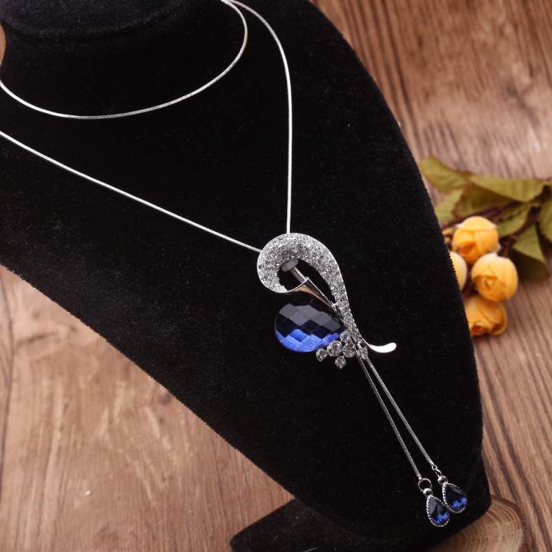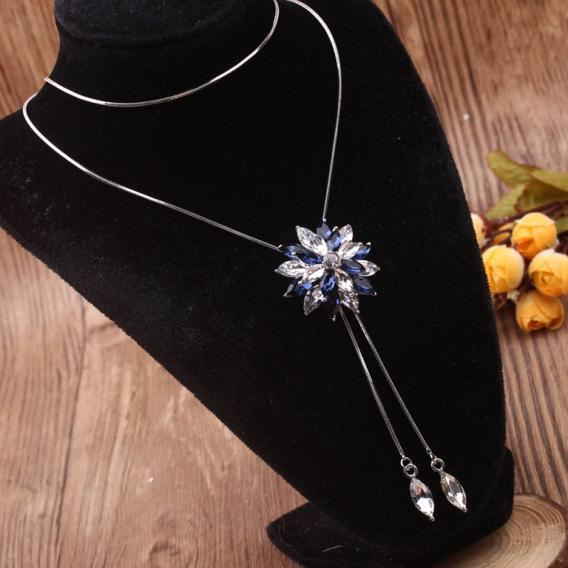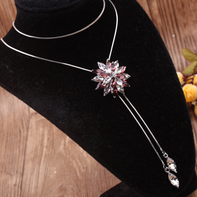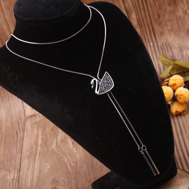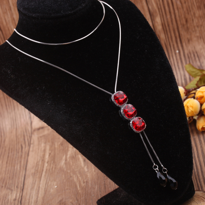 stall boutique jewelry fashion simple fashion net red neck chain bone chain long jewelry women's crystal necklace pendant lock 中文版