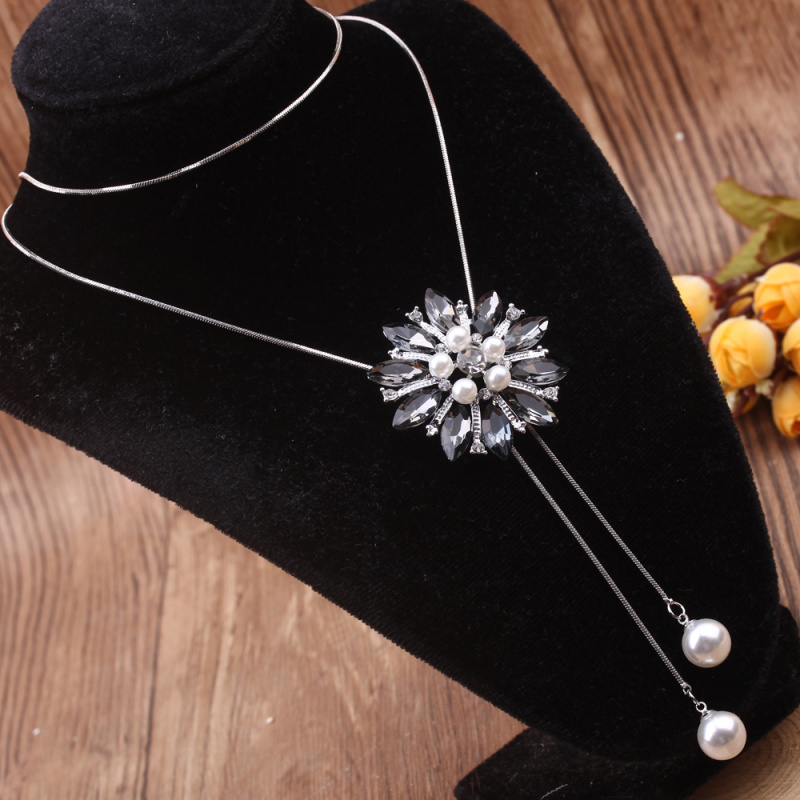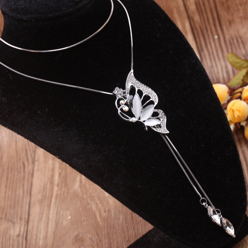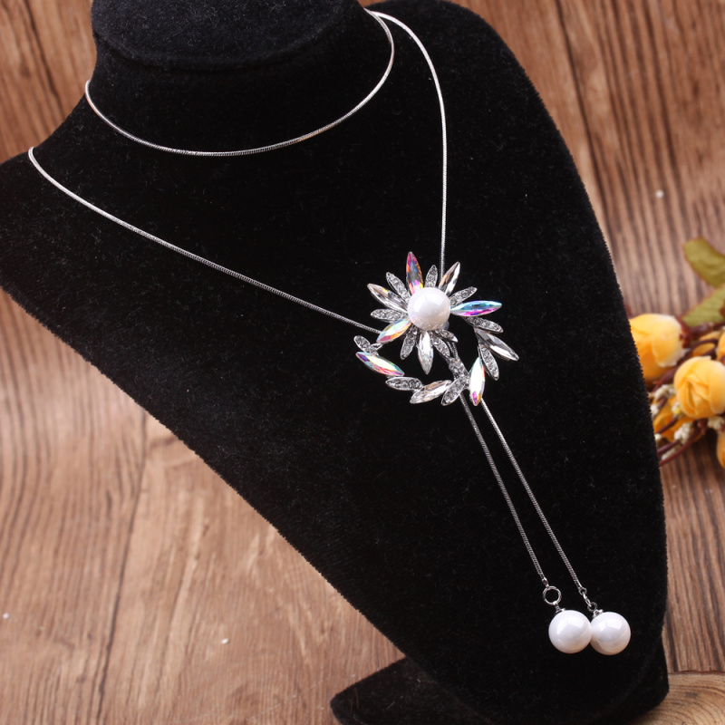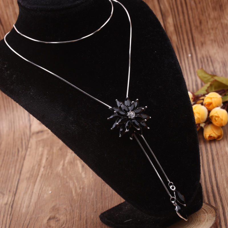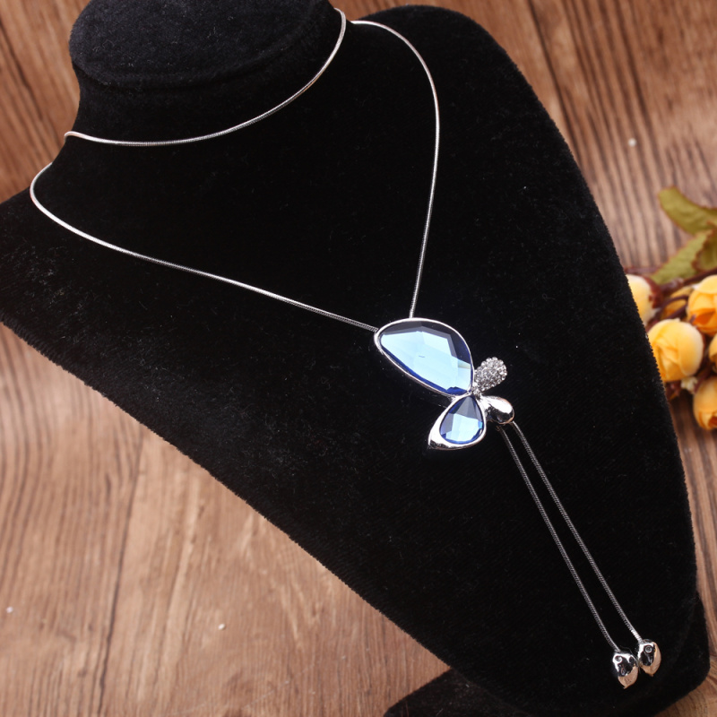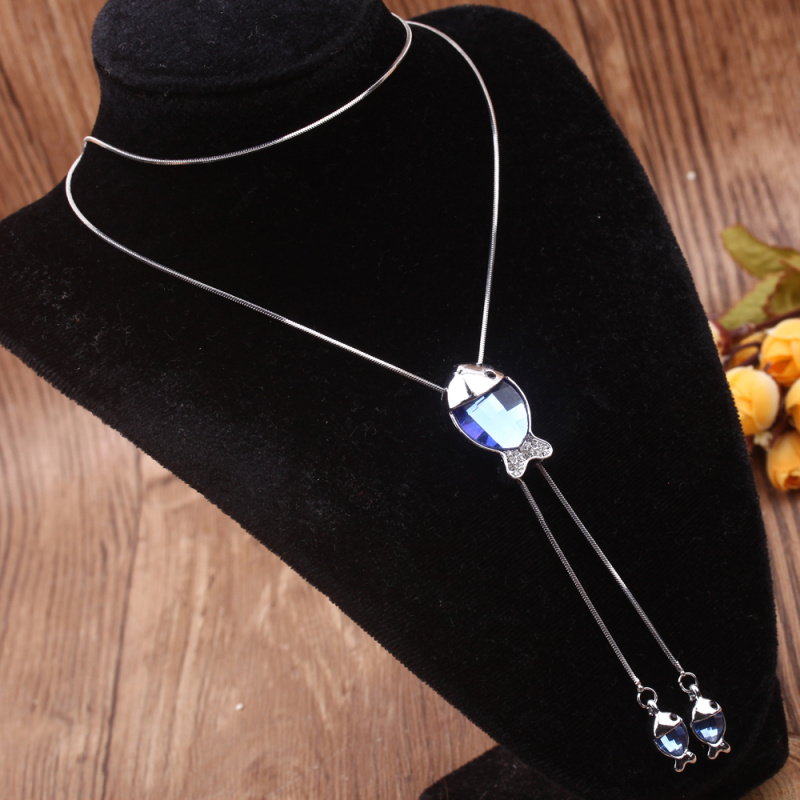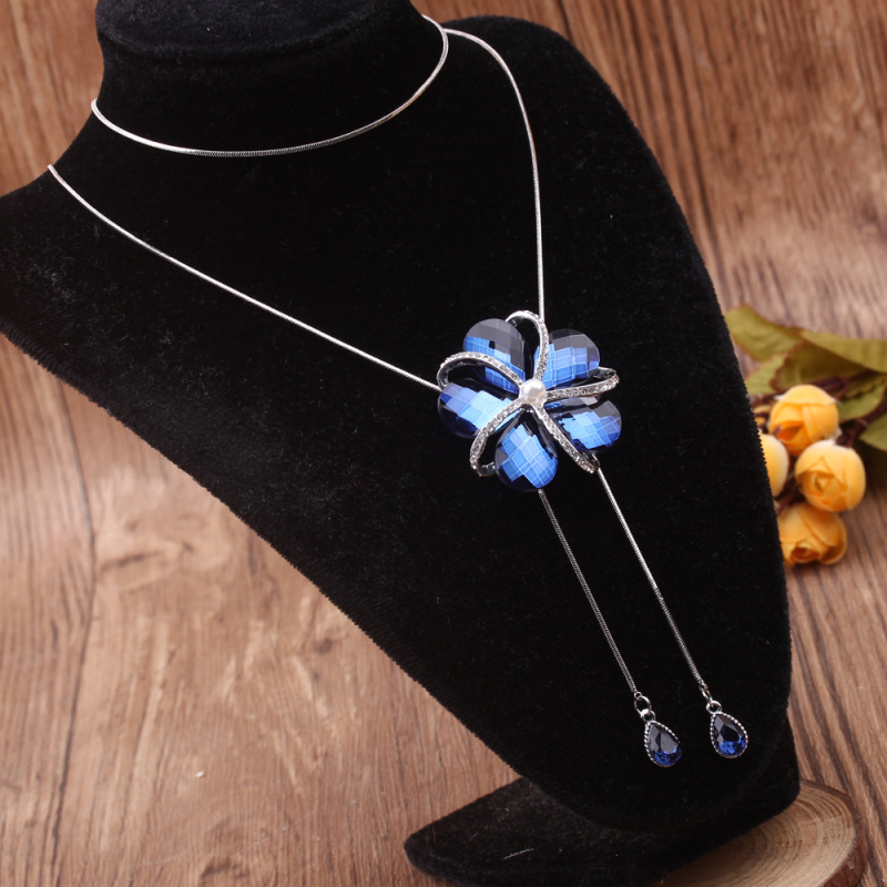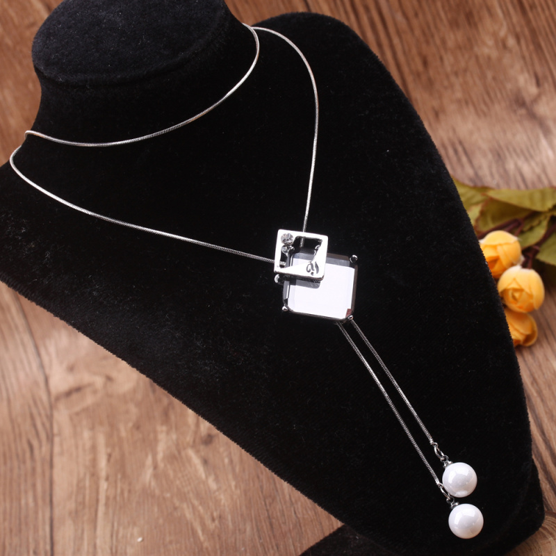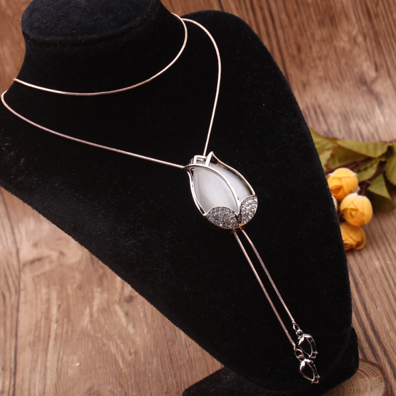 stall boutique jewelry fashion simple fashion net red neck chain bone chain long jewelry women's crystal necklace pendant lock 中文版