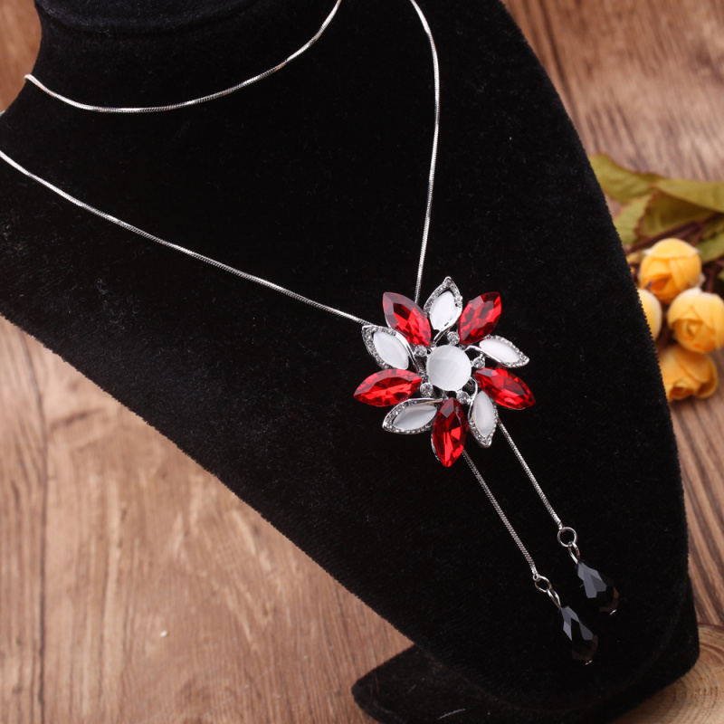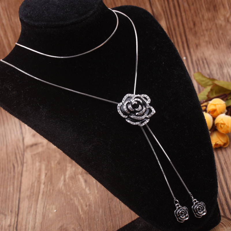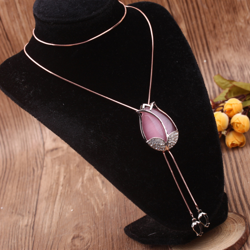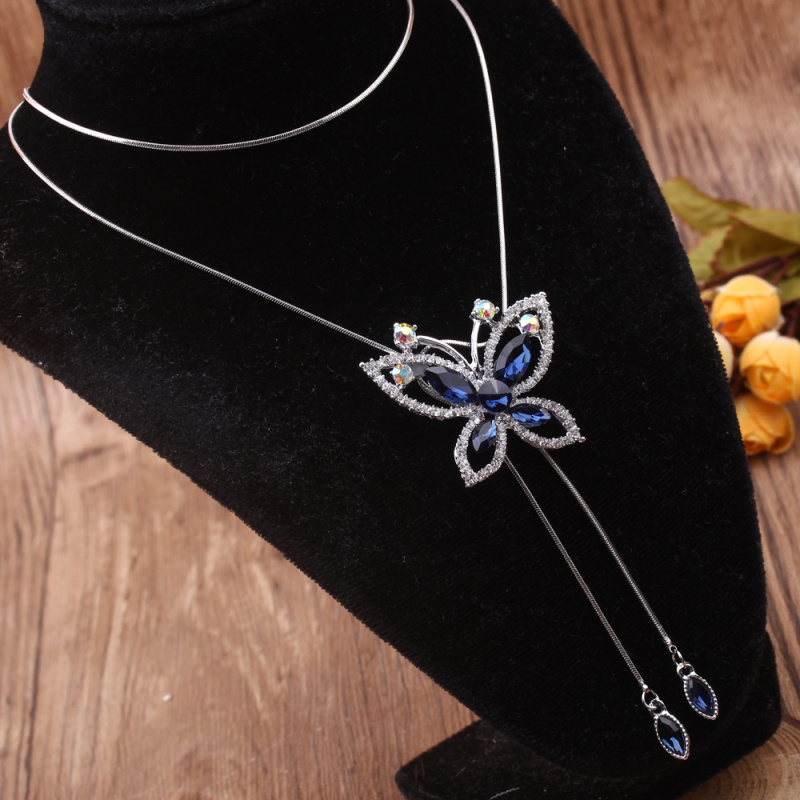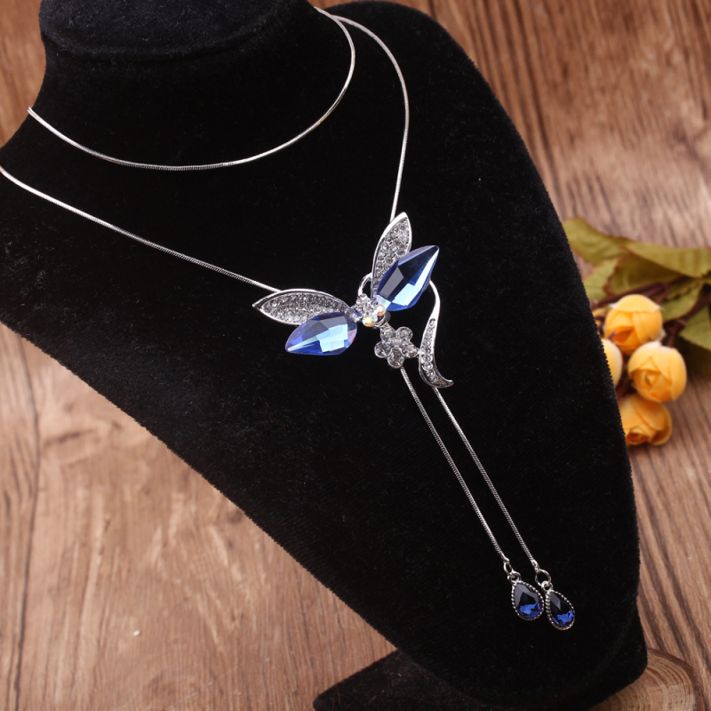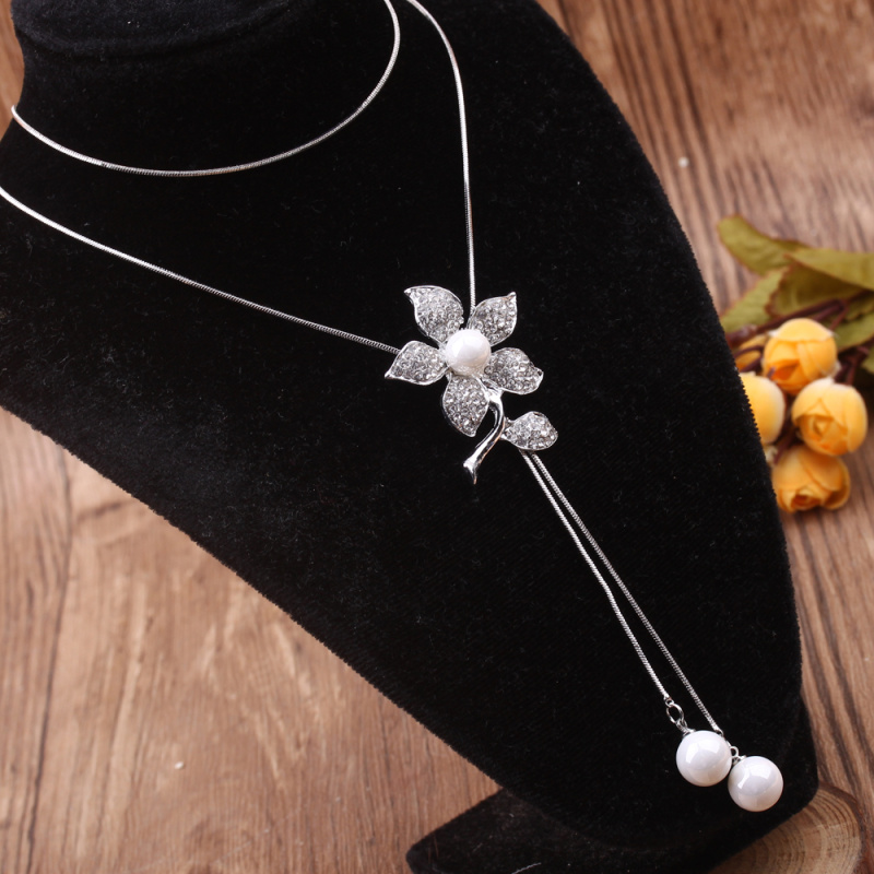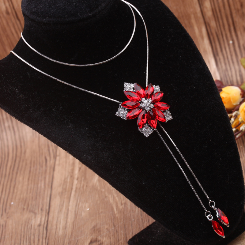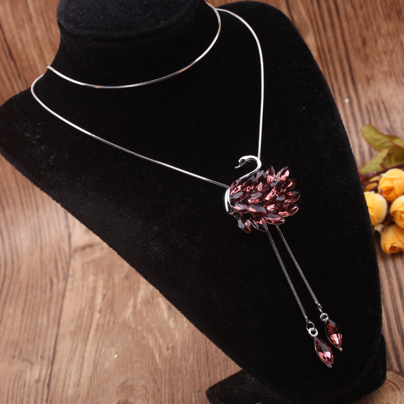 stall boutique jewelry fashion simple fashion net red neck chain bone chain long jewelry women's crystal necklace pendant lock 中文版