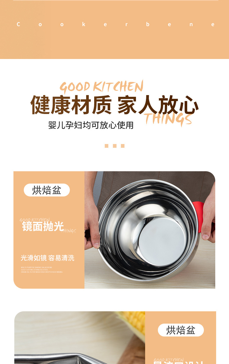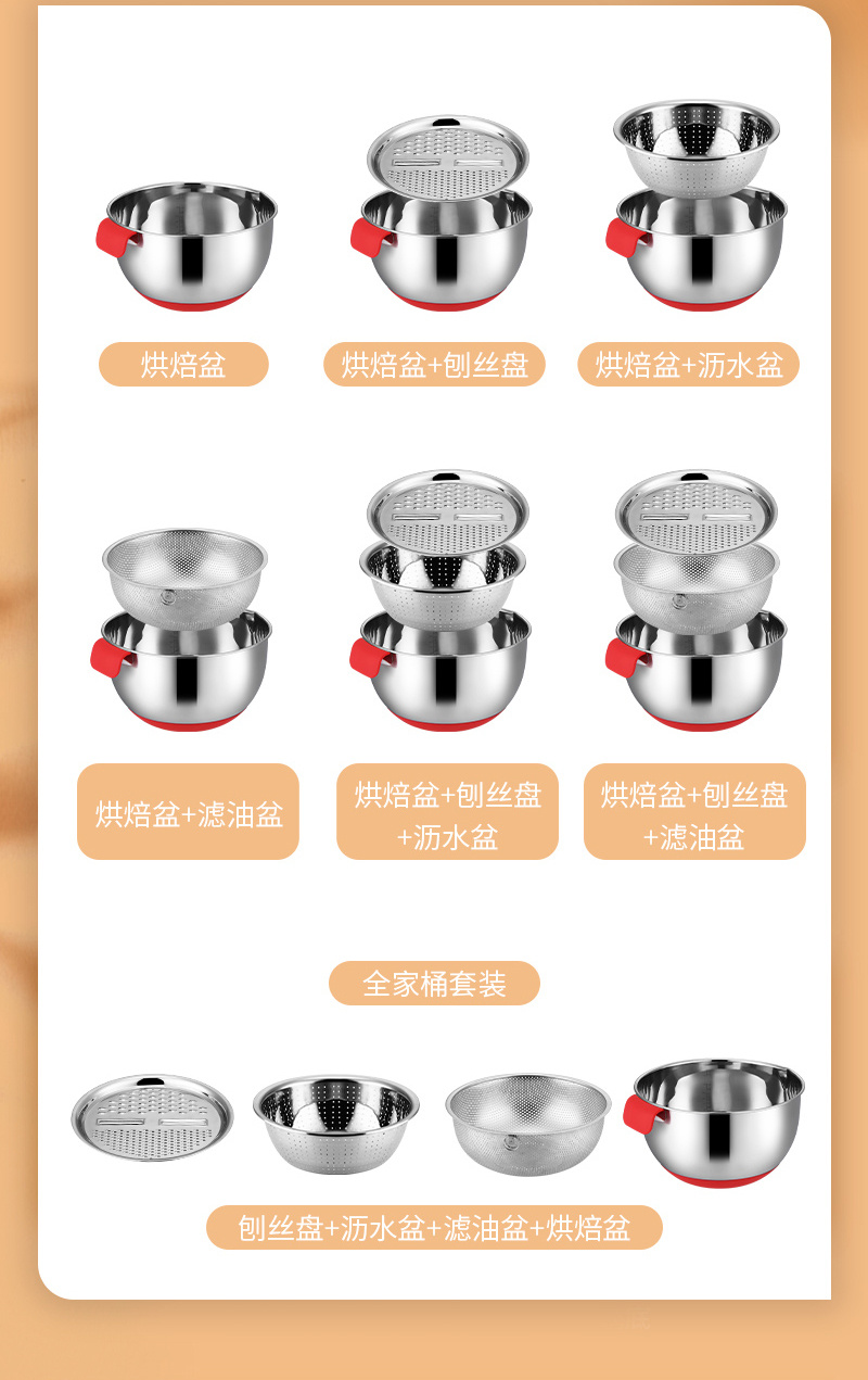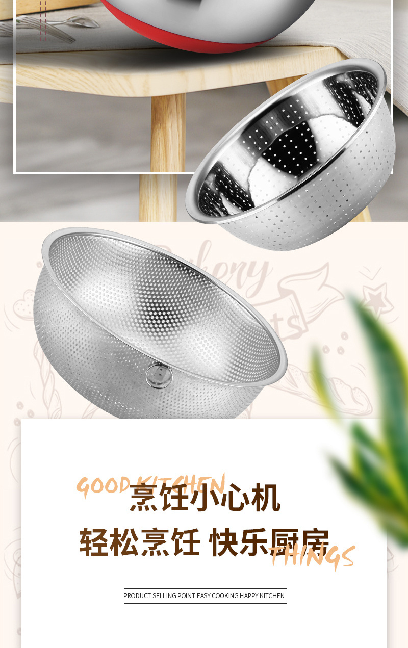 Multifunctional New Stainless Steel Salad Bowl with Steamer 304 Food Grade Material Large Capacity Silicone Non-Slip and Hot 中文版