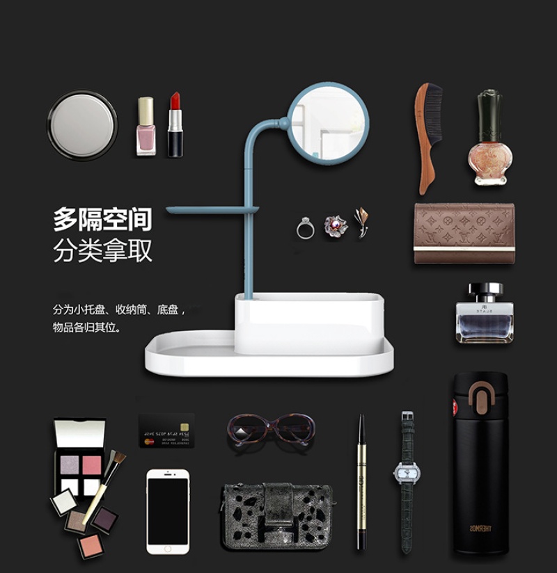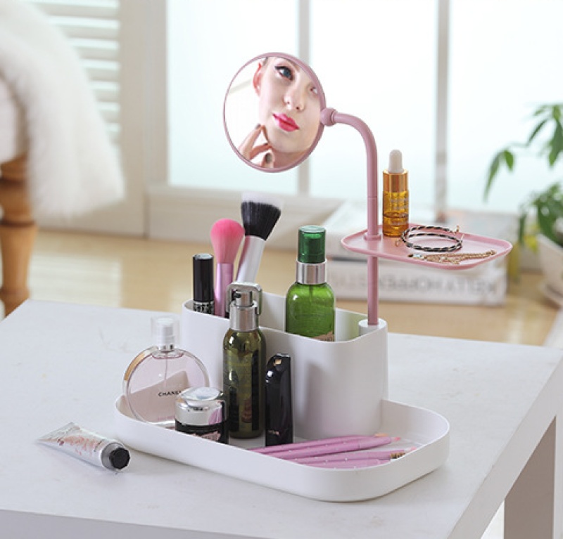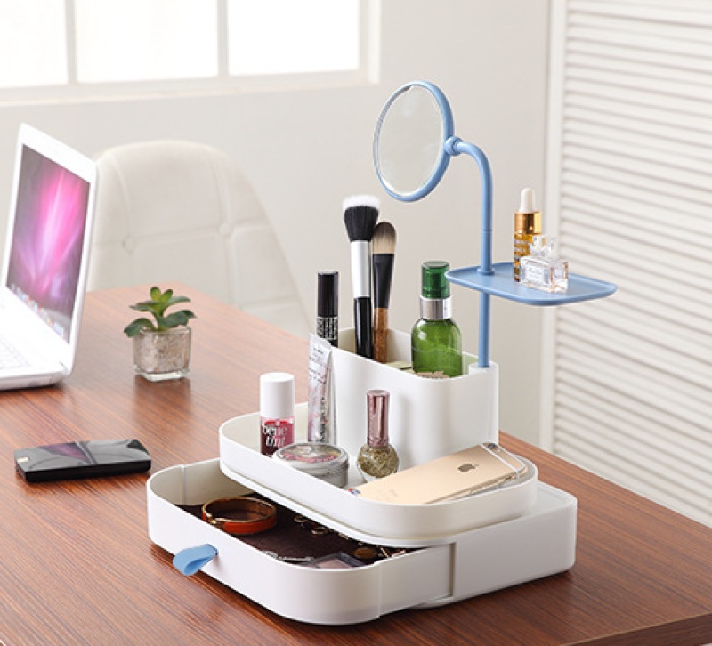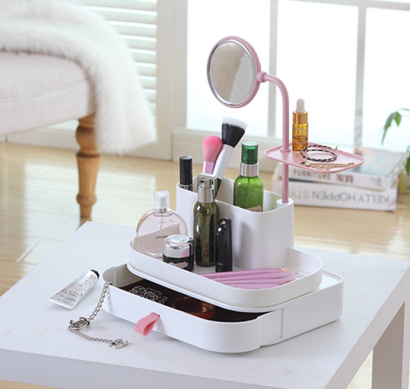 Desktop creative cosmetics storage box drawer style plastic mirror makeup jewelry box set with mirror drawer style