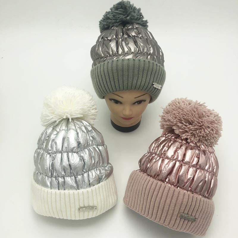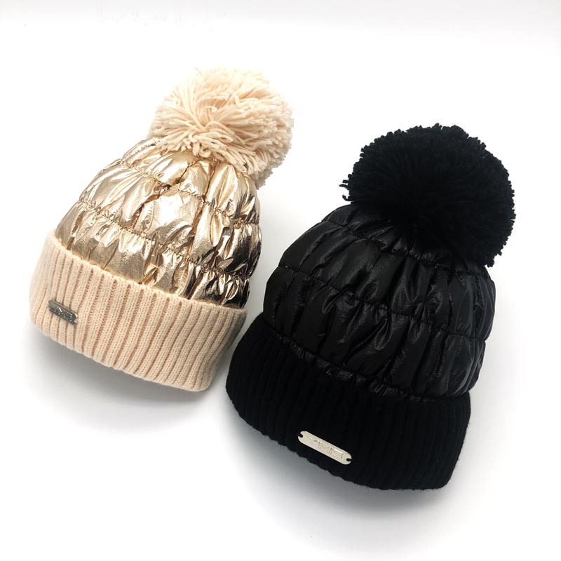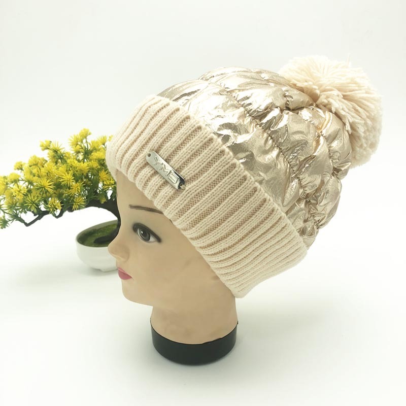 autumn and winter women's down hat cycling hat thickened warm knitted hat big fur ball pullover hat factory direct 中文版