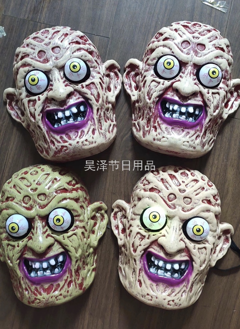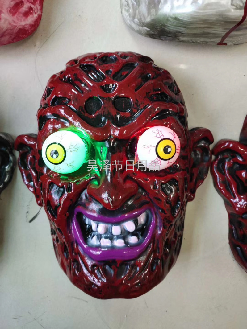 led spring eye ball horror mask scar face bloody mask ghost head hell messenger with light vampire 中文版